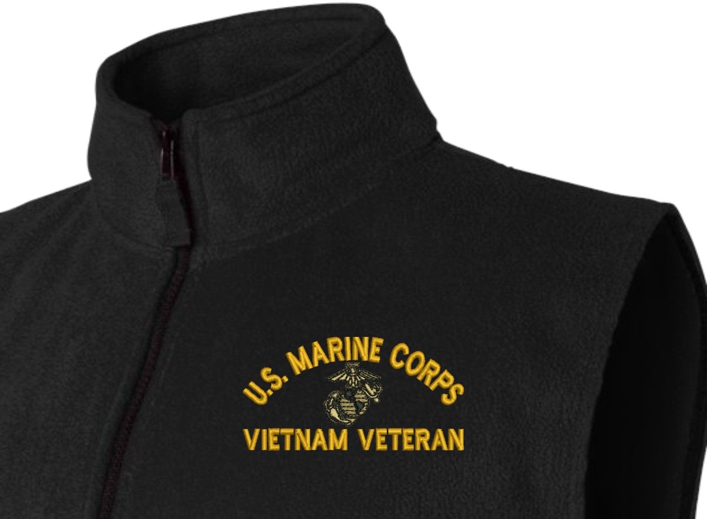 Due to supply chain disruptions, some colors and sizes may not be available in the same Brand, in these cases a brand of comparable quality will be used. Feel free to call in advance of your order, with questions you may have.MilitaryBest is expanding its line of Men's apparel with this quality U.S. Marine Corps Eagle Globe and Anchor (EGA) Vietnam Veteran Full-Zip Fleece Vest. This U.S. Marine Corps Eagle Globe and Anchor (EGA) Vietnam Veteran Full-Zip Fleece Vest features a convertible collar with dyed-to-match zipper pull, oversized nylon reinforced slash pockets, and an elastic hem. It is made using a 100% anti-pill polyester Fleece Vest. This U.S. Marine Corps Eagle Globe and Anchor (EGA) Vietnam Veteran Full-Zip Fleece Vest will make an excellent addition to your wardrobe, or a quality gift. Your satisfaction is guaranteed! These Vests are custom embroidered at our facilities in Scottsboro, AL.