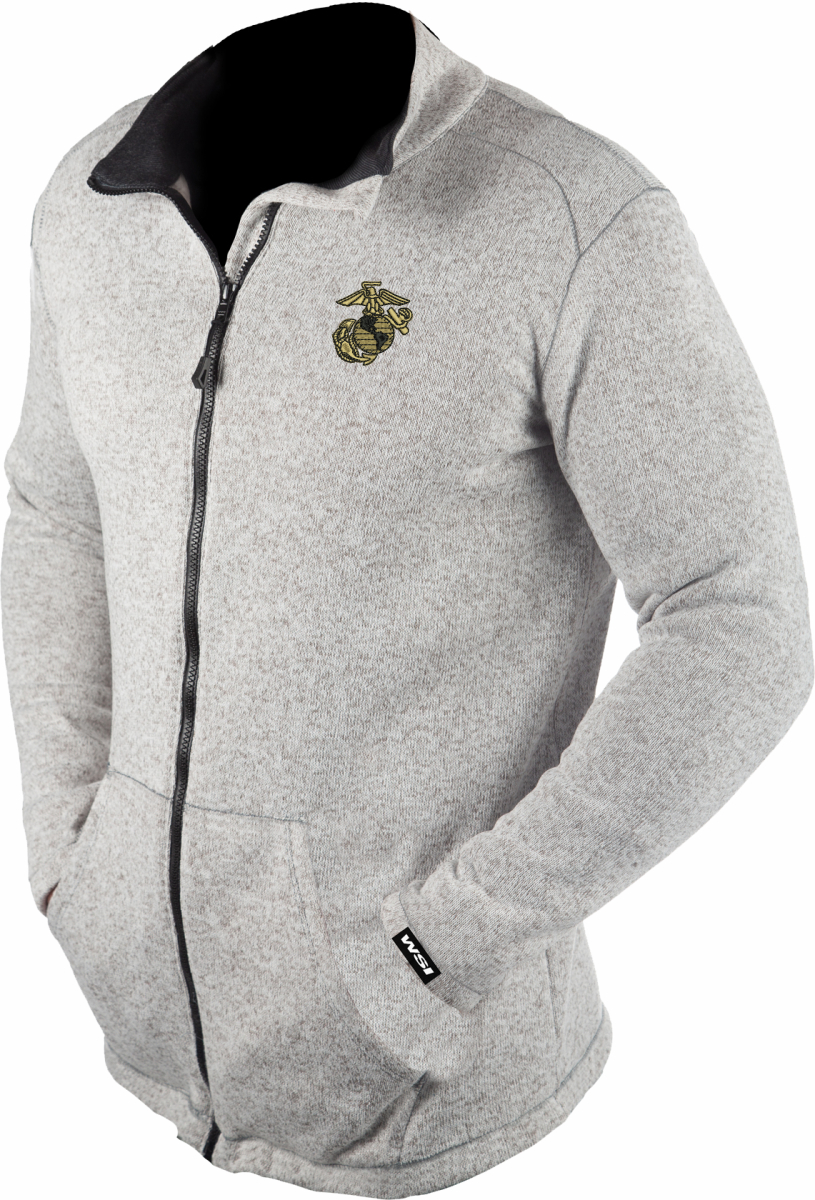 Striving to provide you with the highest quality apparel made in the United States, MilitaryBest is proud to offer this U.S. Marine Corps EGA Knit HEATR® Long Sleeve Full Zip. Manufactured by WSI Sportswear in Minnesota and Embroidered by us here at MilitaryBest in Alabama; this shirt is 100% Made in the USA! We aim to provide you with soft, comfortable, dry-fit, American-made clothing that allows you to be your best. HEATR® is a high-tech material developed by WSI that helps keep you up to 40% warmer than other materials on the market. Fibers that are integrated within the fabric expand and heat up as they come into contact with the skin. Since the fibers are integrated in the fabric, they will not wash out. *For washing we recommend machine wash cold with like colors, and line dry.PRODUCT FEATURES