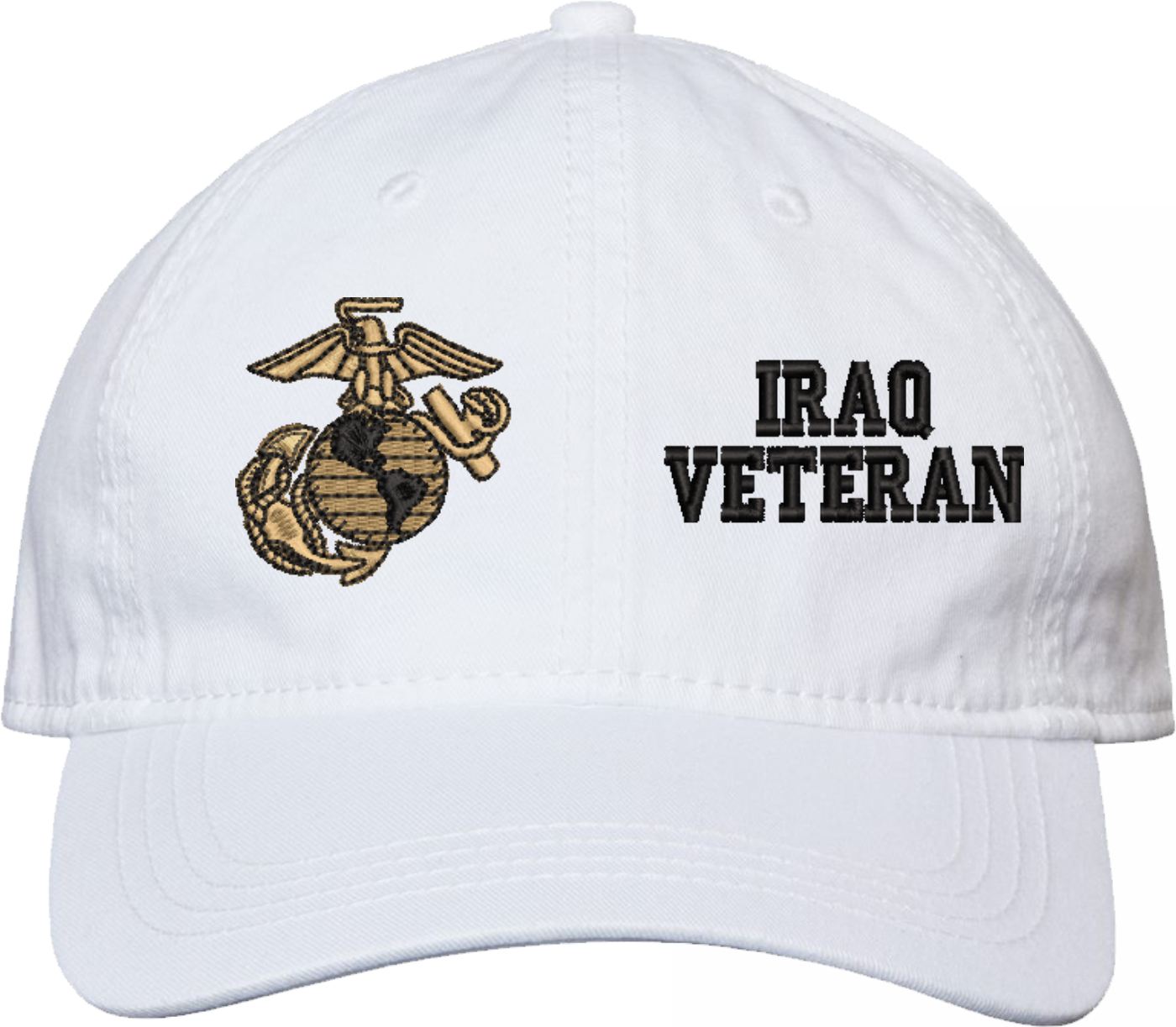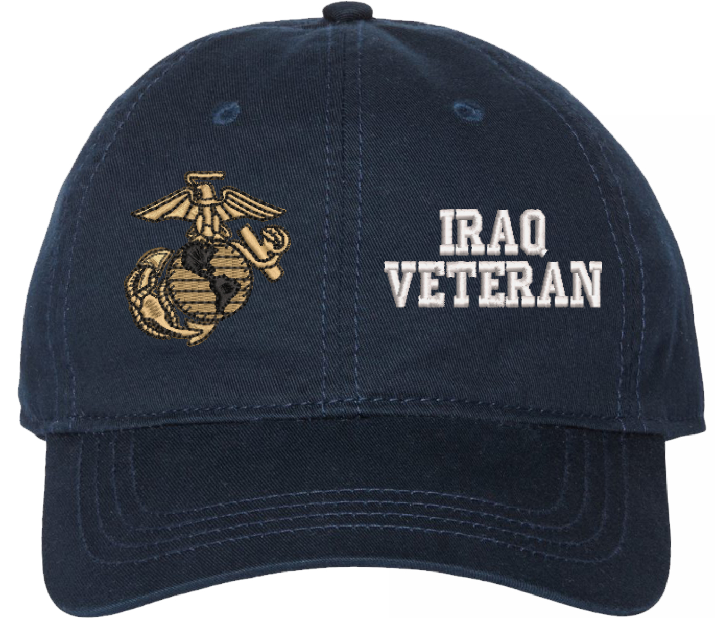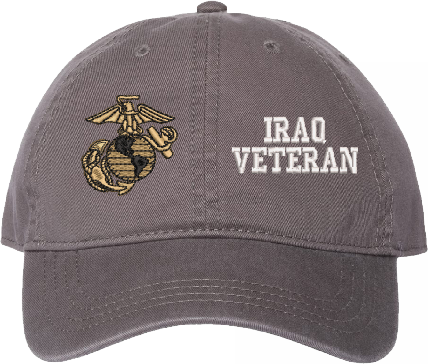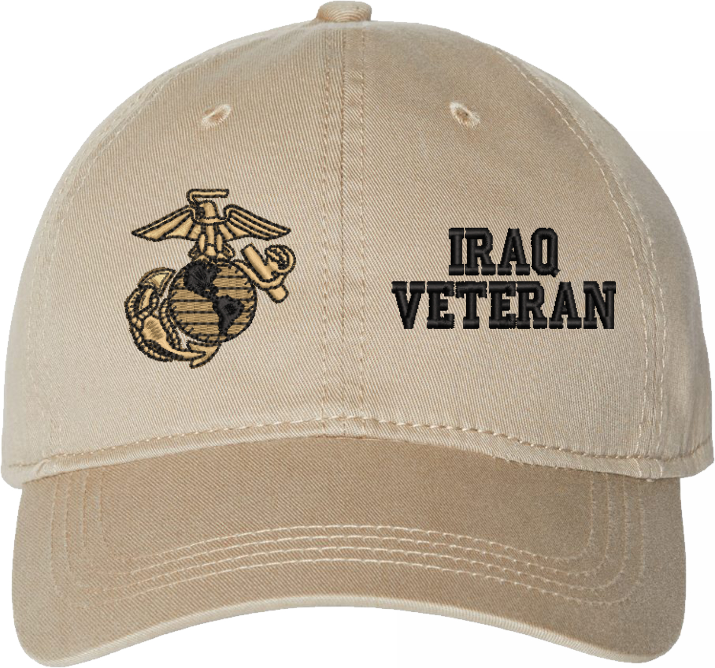 Show your Marine Corps pride with this U.S. Marine Corps Iraq Veteran Unstructured Dad Cap from MilitaryBest. Crafted from 100% washed chino twill cotton, this six-panel, low-profile cap offers a relaxed and comfortable fit. Featuring high-quality embroidery done in our Scottsboro, Alabama facility, this cap is designed with a pre-curved visor and an adjustable tri-glide buckle closure for a perfect fit. Whether for everyday wear or as a meaningful gift, this cap is a great way to honor your own or a loved one's service.For caps ordered with custom embroidered personalized text please allow an additional 3 to 5 days production time. All custom back text will be embroidered in ALL CAPITAL LETTERS. Caps with back text or eggs are non-returnable unless there is a material defect in the cap.