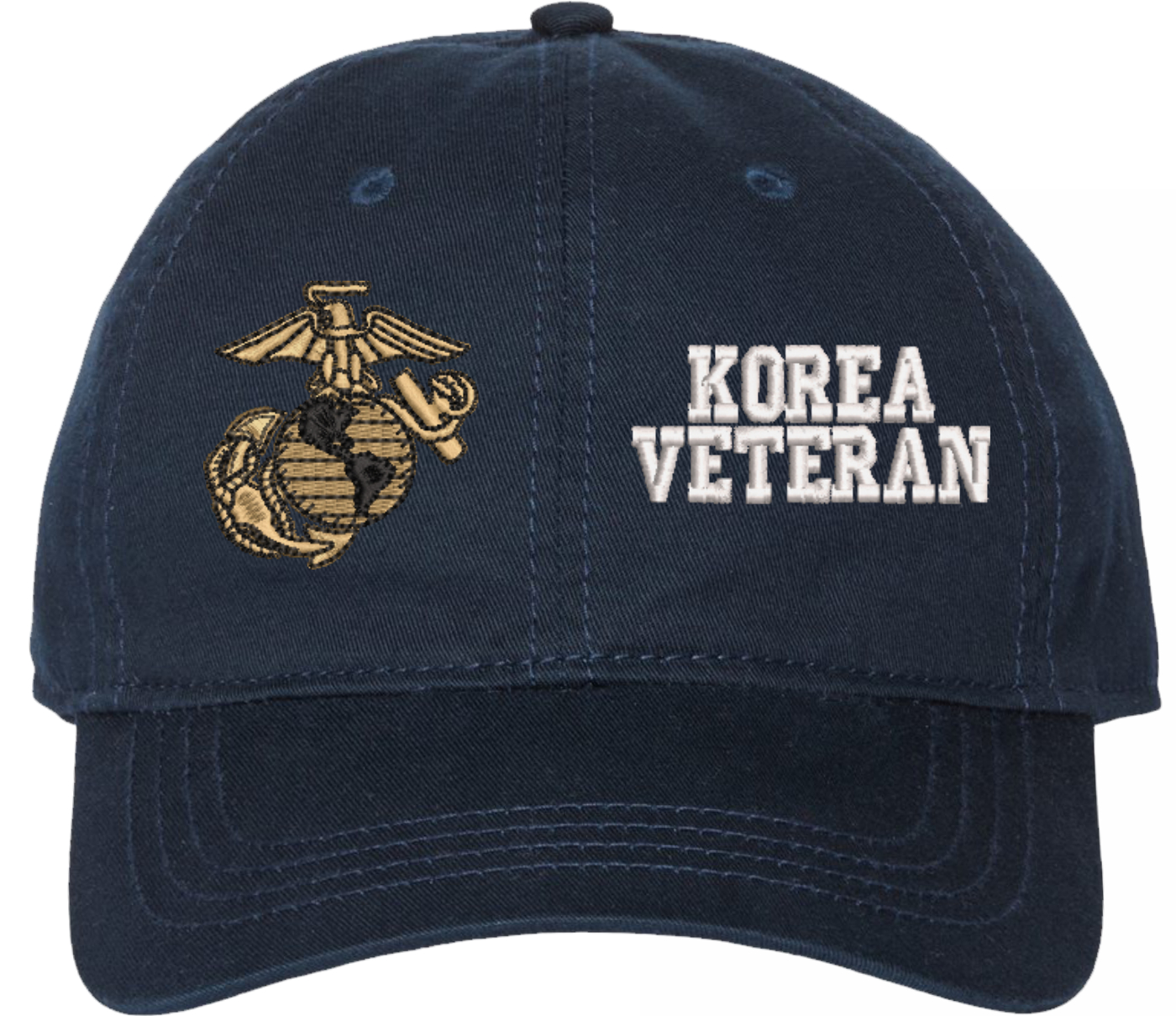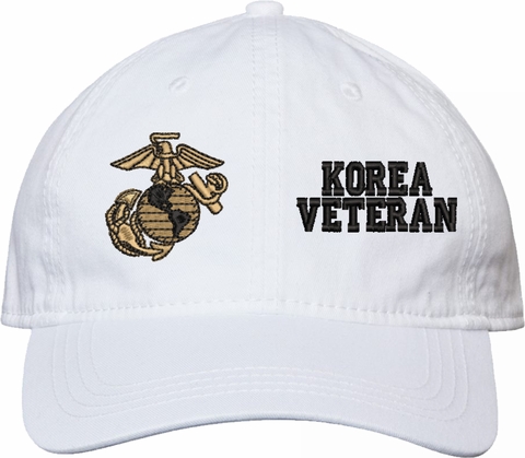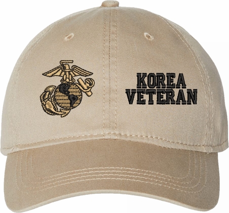 Show your Marine Corps pride with this U.S. Marine Corps Korea Veteran Unstructured Dad Cap from MilitaryBest. Crafted from 100% washed chino twill cotton, this six-panel, low-profile cap offers a relaxed and comfortable fit. Featuring high-quality embroidery done in our Scottsboro, Alabama facility, this cap is designed with a pre-curved visor and an adjustable tri-glide buckle closure for a perfect fit. Whether for everyday wear or as a meaningful gift, this cap is a great way to honor your own or a loved one's service.For caps ordered with custom embroidered personalized text please allow an additional 3 to 5 days production time. All custom back text will be embroidered in ALL CAPITAL LETTERS. Caps with back text or eggs are non-returnable unless there is a material defect in the cap.