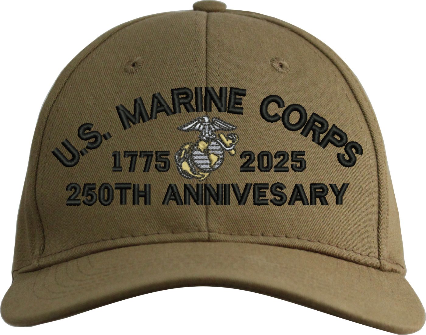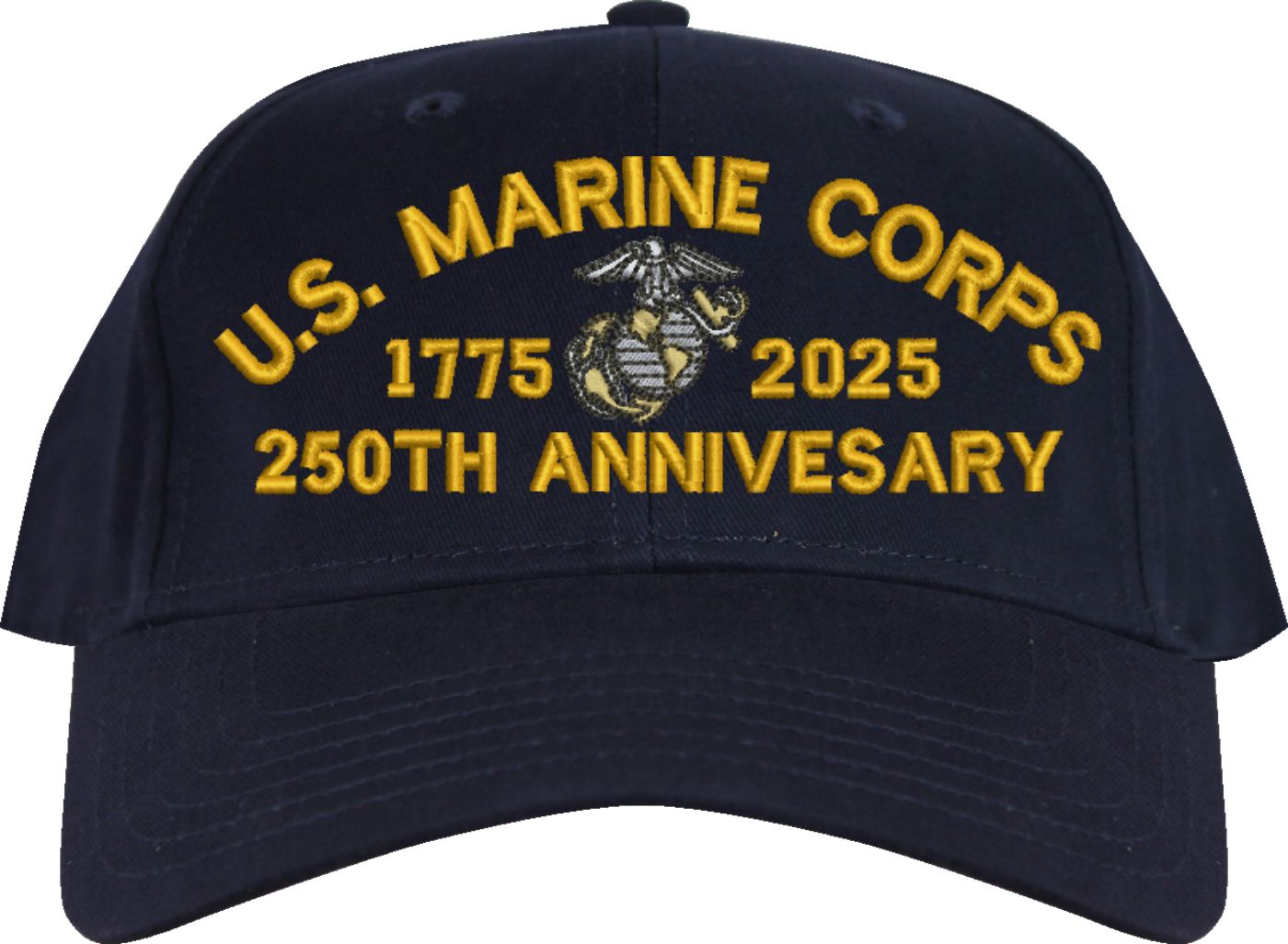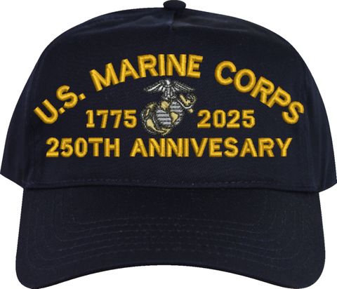 MilitaryBest is proud to offer this quality U.S. Marine Corps Officer 250th Anniversary Embroidered Cap. This cap is available in either 5 panel high profile or 6 panel low profile styling. This cap will make a great addition to your collection or a great gift. This cap is crafted by our skilled embroidery technicians at our facilities in Scottsboro, AL.. Your satisfaction is guaranteed!For caps ordered with custom embroidered personalized text please allow an additional 3 to 5 days production time. All custom text will be embroidered in ALL CAPS. Caps with custom text or eggs are non-returnable unless there is a material defect in the cap.