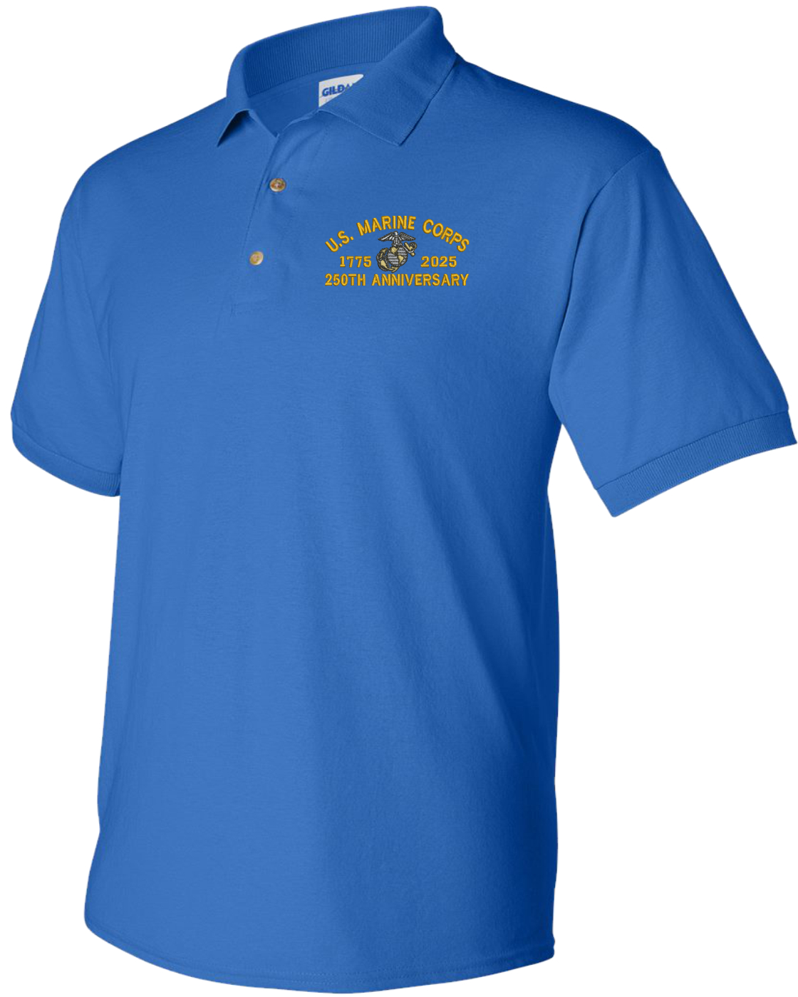MilitaryBest is proud to offer this quality U.S. Marine Corps Officer 250th Anniversary Embroidered Polo. Each Polo is available in either 100% Ringspun cotton pique or a 50/50 cotton/polyester blend. These quality Military Polos are proudly embroidered at our facilities in Scottsboro, AL. Support the Army MWR program by purchasing only from Licensed Vendors.