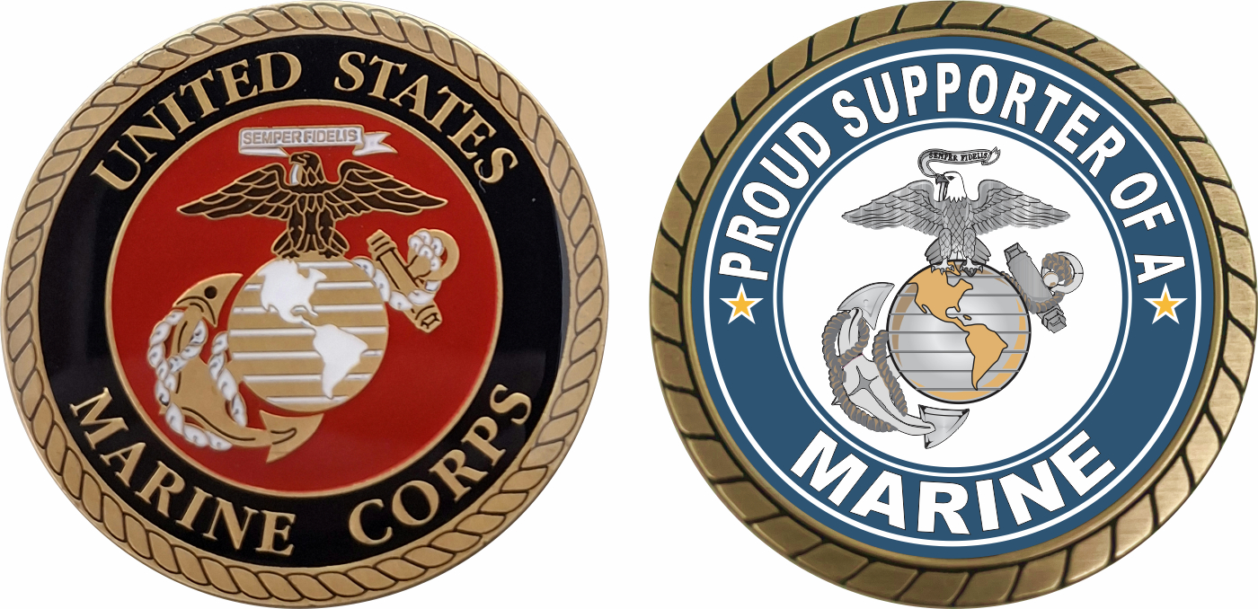 This U.S. Marine Corps Proud Supporter of a Marine Challenge Coin is proudly offered by MilitaryBest. This Officially Licensed Marine Corps coin has beautiful enamel finish on one side and an organized crisp clean U.S. Marine Corps Proud Supporter of a Marine design on the opposite side.