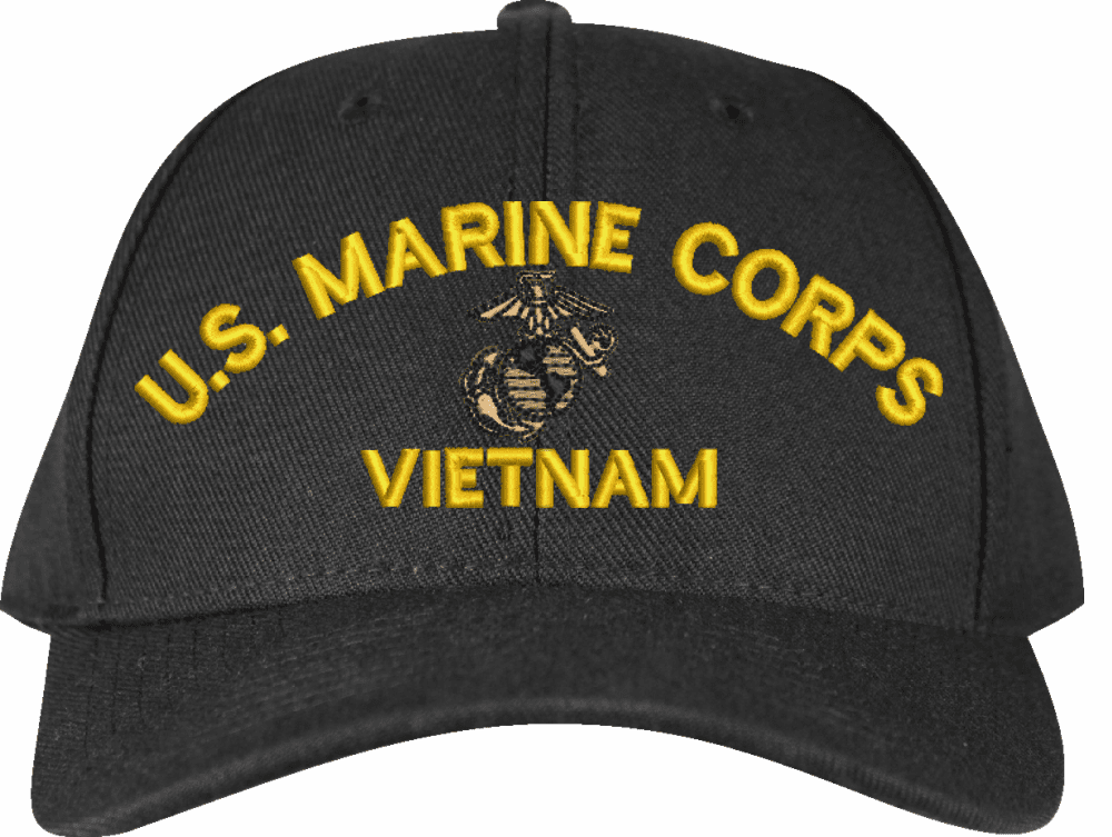 MilitaryBest is proud to offer this quality U.S. Marine Corps Vietnam Embroidered Cap. This cap is available in either 5 panel high profile or 6 panel low profile styling. This U.S. Marine Corps Vietnam Embroidered Cap will make a great addition to your collection or a great gift. You are sure to be the envy of all your veteran buddies. This U.S. Marine Corps Vietnam Embroidered Cap is embroidered at our facilities in Scottsboro, AL by skilled craftsmen with a passion for patriotism. Your satisfaction is guaranteed!We will be glad to include scrambled eggs. For caps ordered with custom embroidered personalized text please allow an additional 3 to 5 days production time. All custom back text will be embroidered in ALL CAPS. Caps with back text or eggs are non-returnable unless there is a material defect in the cap. Unless specified otherwise text will be embroidered with traditional yellow/gold thread.