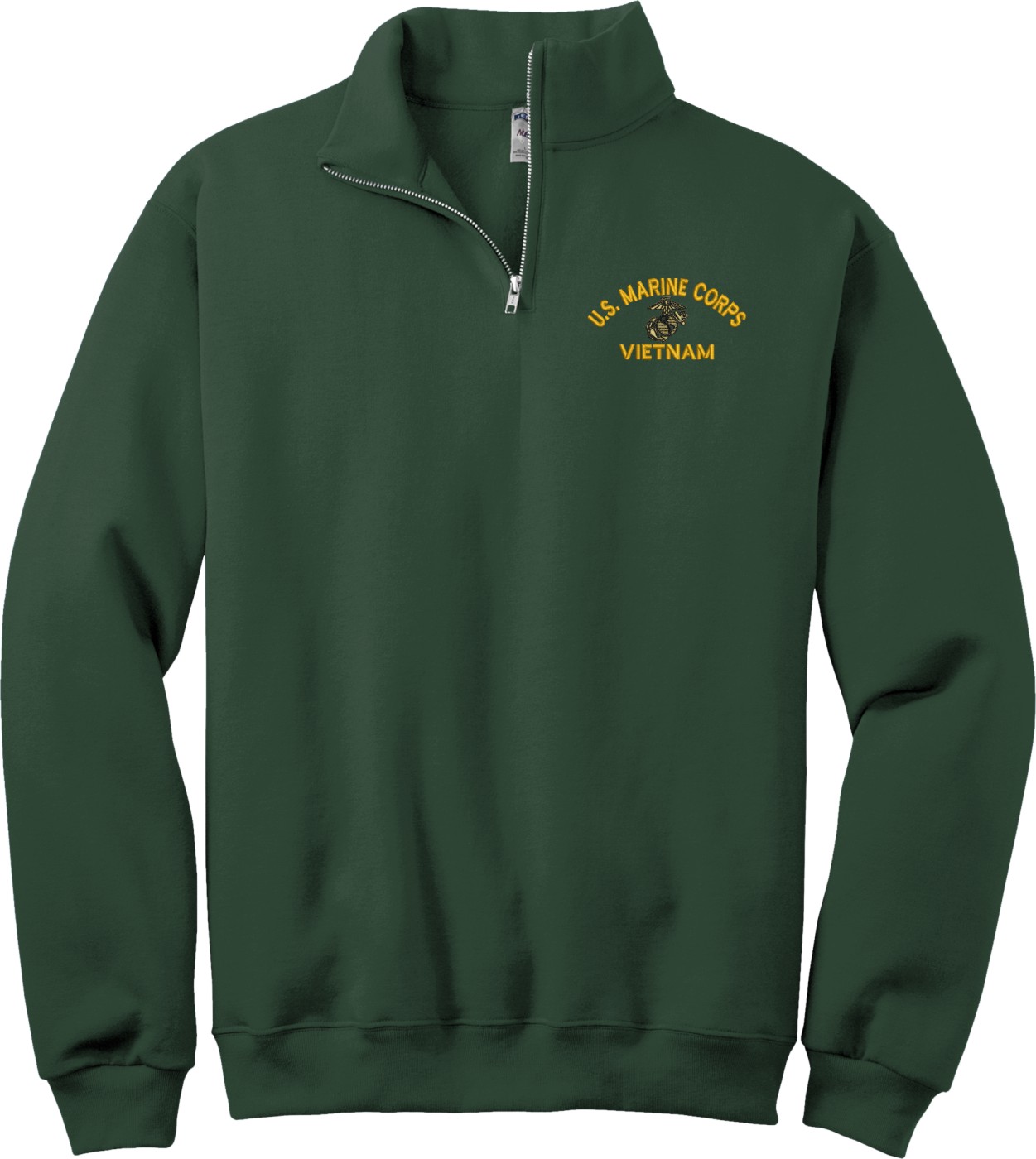 This U.S. Marine Corps Vietnam Embroidered Forest Green Quarter-Zip Pullover Large is an overstock item and is only available for the value price while supplies last. Clearance Items are not eligible for Refunds or Returns,A percentage of the sale of each MilitaryBest item is forwarded to the licensing departments of each respective branch of service in support of the MWR (Morale, Welfare, & Recreation) program. These payments are made by either ALL4U LLC or the wholesaler from where the item originated. Our team thanks you for your service and your support of these programs.