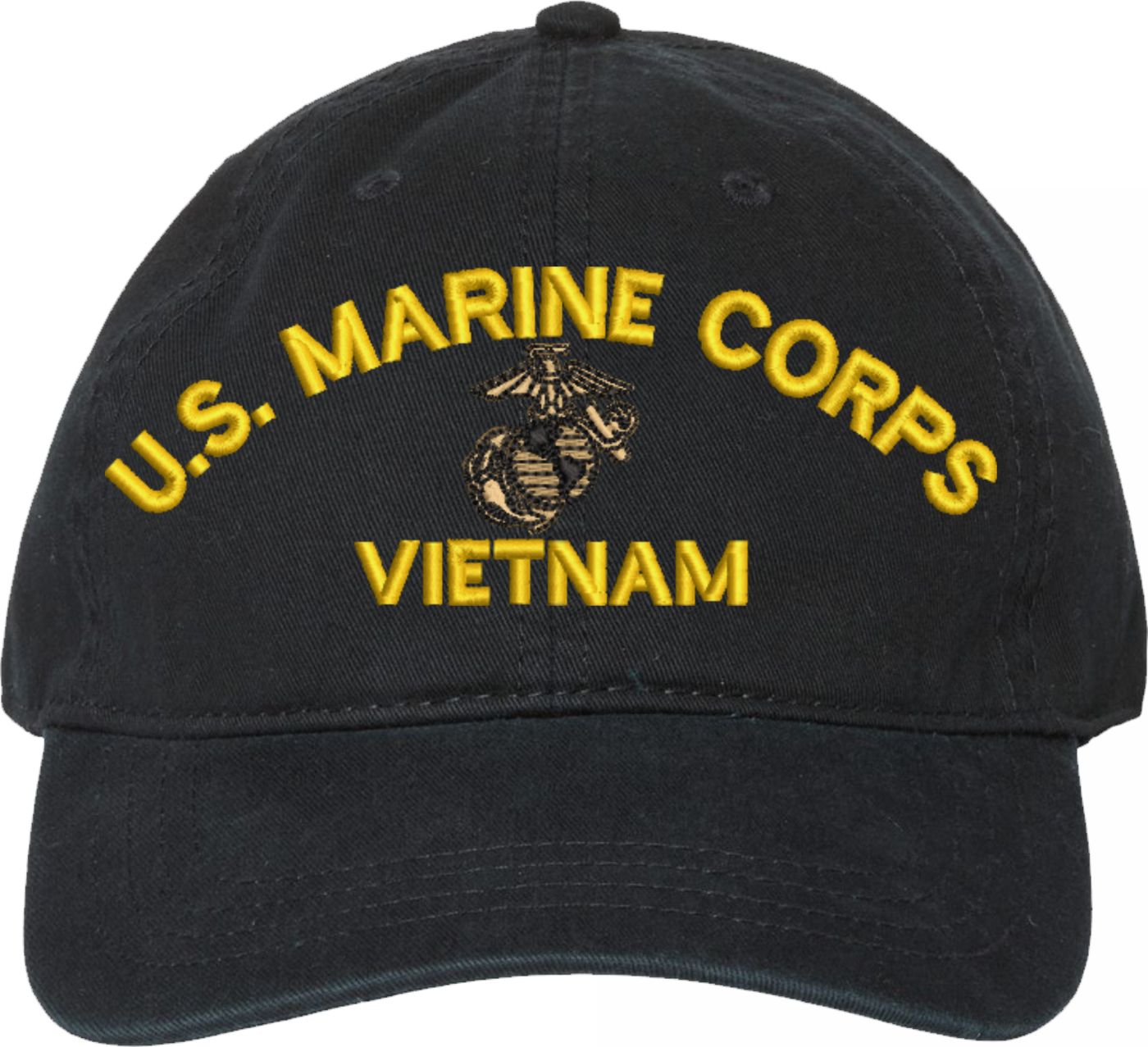 Show your Marine Corps pride with this U.S. Marine Corps Vietnam Unstructured Dad Cap from MilitaryBest. Crafted from 100% washed chino twill cotton, this six-panel, low-profile cap offers a relaxed and comfortable fit. Featuring high-quality embroidery done in our Scottsboro, Alabama facility, this cap is designed with a pre-curved visor and an adjustable tri-glide buckle closure for a perfect fit. Whether for everyday wear or as a meaningful gift, this cap is a great way to honor your own or a loved one's service.For caps ordered with custom embroidered personalized text please allow an additional 3 to 5 days production time. All custom back text will be embroidered in ALL CAPITAL LETTERS. Caps with back text or eggs are non-returnable unless there is a material defect in the cap.