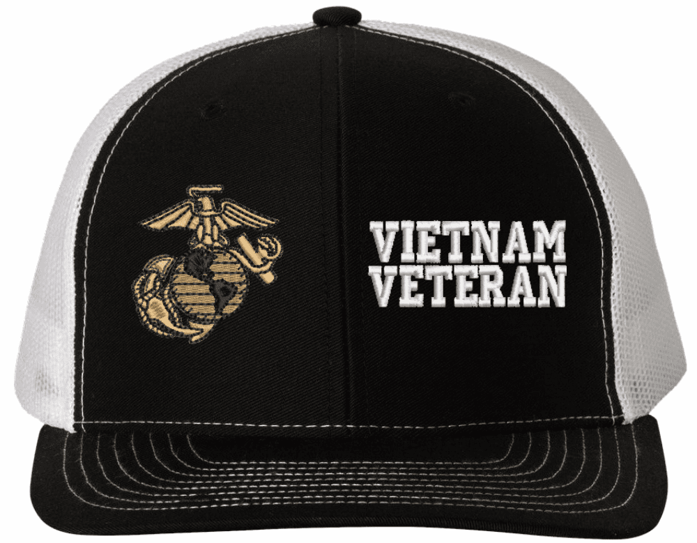 MilitaryBest is proud to offer this U.S. Marine Corps Vietnam Veteran Made in the USA Cap. The design of this U.S. Marine Corps Cap is crisp, clean, and sure to be loved by people of all ages! Select above from our many cap colors. This U.S. Marine Corps Vietnam Veteran Made in the USA Cap is crafted by our skilled embroidery technicians at our facilities in Scottsboro, AL. As with all MilitaryBest items, your satisfaction is guaranteed!Caps ordered with custom embroidered personalized back text require an additional 2 to 3 days production time. All custom back text will be embroidered in ALL CAPITAL LETTERS. Caps personalized with back text are non-returnable unless there is a material defect in the cap.