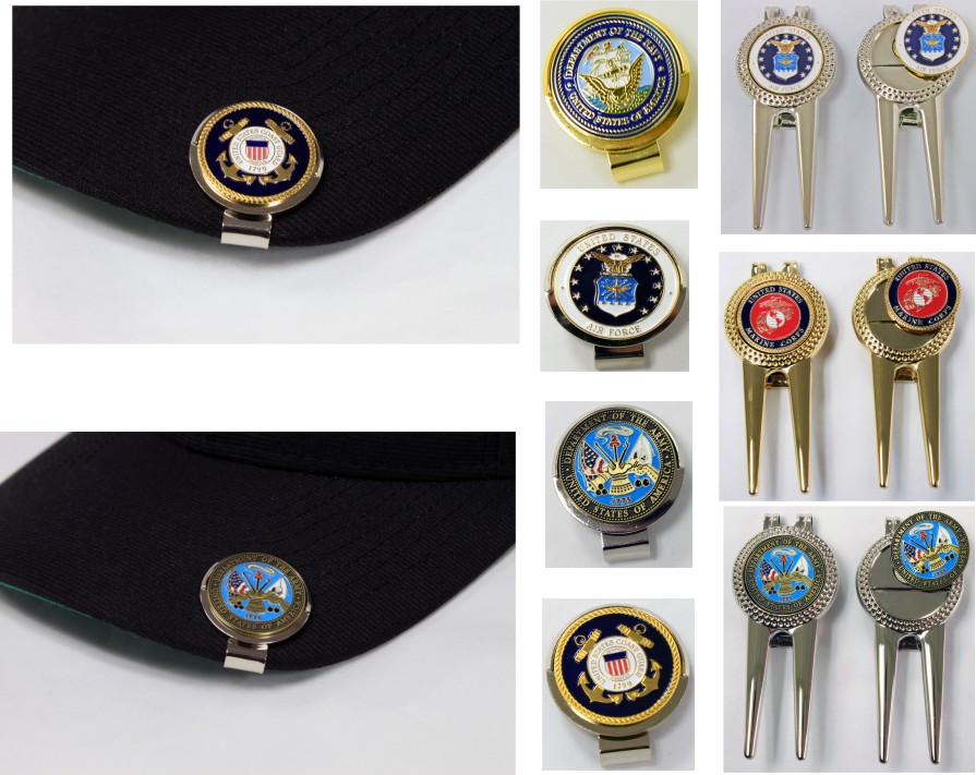 Below you'll find our newly designed U.S. Army, U.S. Marine Corps, U.S. Air Force, U.S. Navy and U.S. Coast Guard golf divot repair tools and ball markers. The quality and workmanship of each Divot Repair Tool and Ball Marker is guaranteed! We are proud to offer these Military Golf accessories and hope you'll enjoy them while on the links!