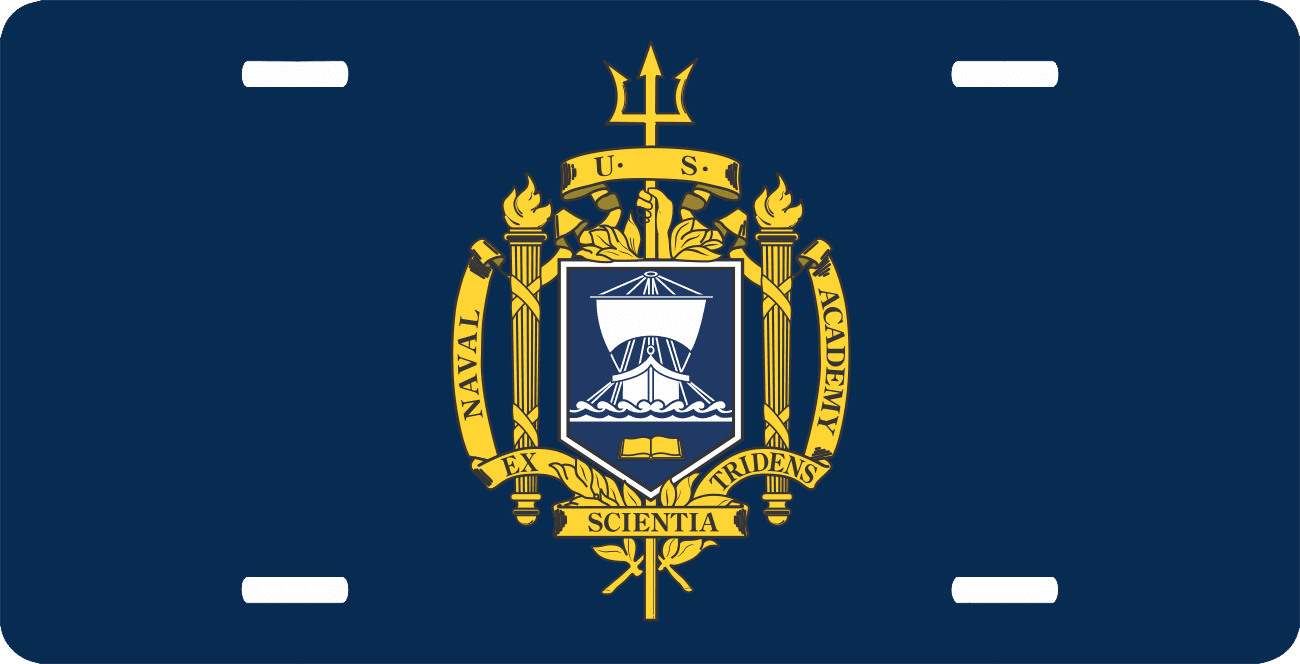 This US Naval Academy License Plate is made from heavy gauge aluminum and has a baked enamel finish to last for many years of use. Each plate measures 5 15/16" x 11 15/16". This license plate would make a wonderful addition to your collection or a great gift.