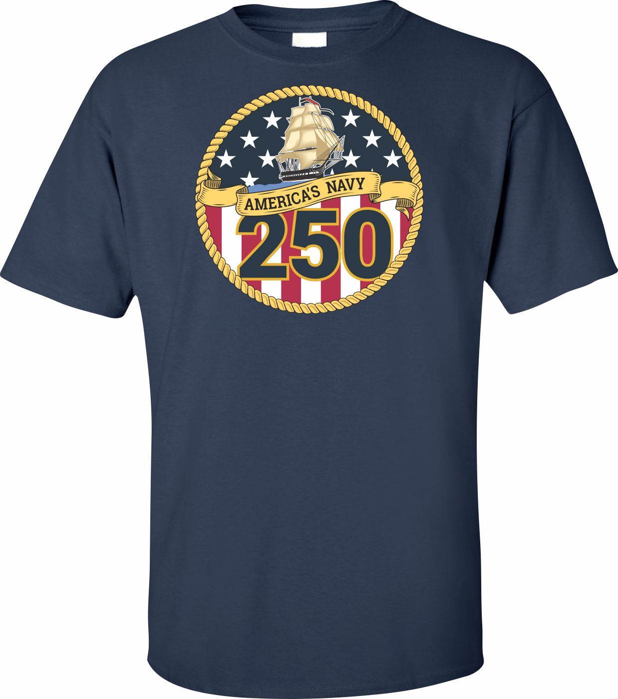MilitaryBest is proud to offer this fine U.S. Navy 250th Anniversary Printed T-Shirt. This shirt is available with several options for the image on the front of the shirt, as well as, offering a full-sized Insignia on the back. Each T-shirt is proudly printed in the USA.Unless there is a defect in workmanship or material, these shirts are unreturnable.