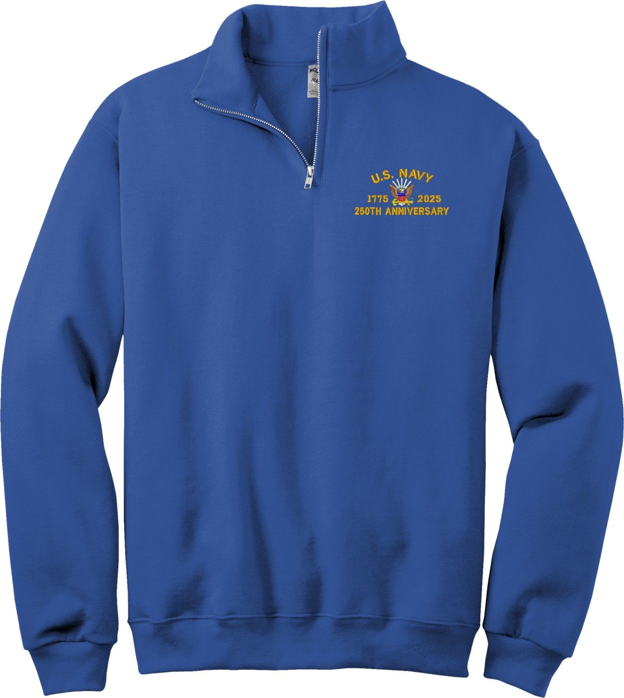 This U.S. Navy 250th Anniversary Royal Blue Quarter-Zip Pullover 2X-Large is an overstock item and is only available for the value price while supplies last. Clearance Items are not eligible for Refunds or Returns,A percentage of the sale of each MilitaryBest item is forwarded to the licensing departments of each respective branch of service in support of the MWR (Morale, Welfare, & Recreation) program. These payments are made by either ALL4U LLC or the wholesaler from where the item originated. Our team thanks you for your service and your support of these programs.