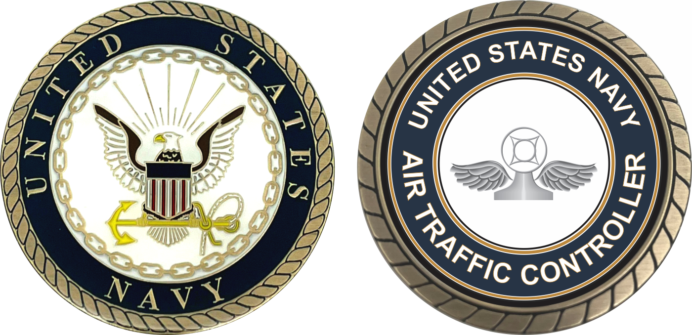 This 1 3/4” U.S. Navy Air Traffic Controller AC Challenge Coin is proudly offered by MilitaryBest. This Officially Licensed Navy coin has beautiful enamel finish on one side and an organized crisp clean Air Traffic Controller AC design on the opposite side.