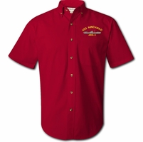 Show your service in a classic way with this custom embroidered denim button down shirt with your ship on it. For sailors of the U.S. Navy ARG Internal Combustion Engine Repair Shipss.