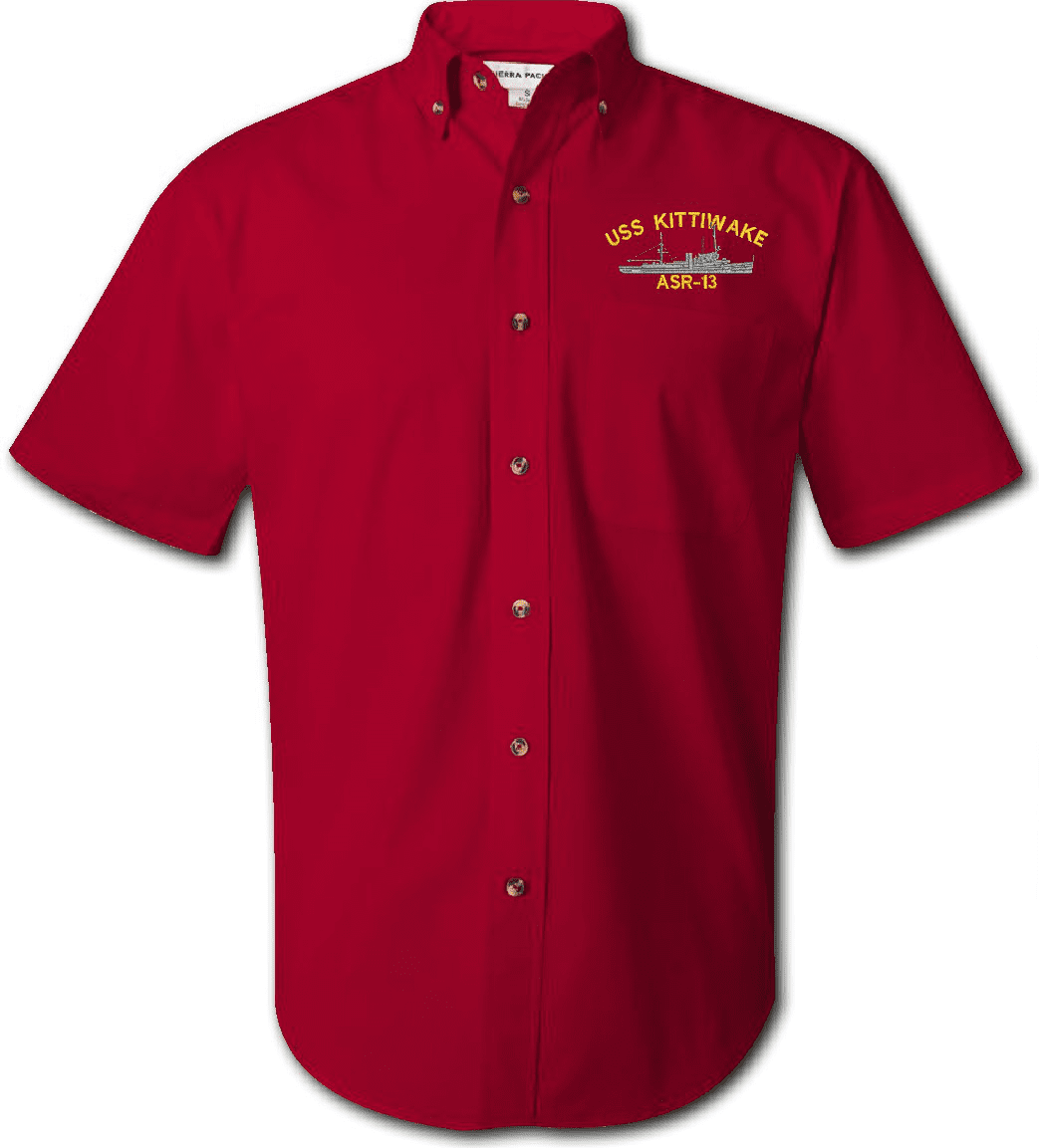 Show your service in a classy way with this custom embroidered Featherlite Brand button down shirt with your ship on it. For sailors of the U.S. Navy ASR Submarine Rescue Shipss.