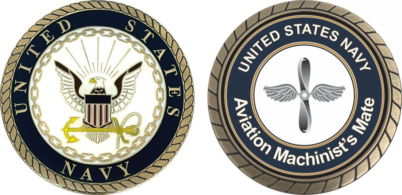 This 1 3/4” U.S. Navy Aviation Machinist's Mate AD Challenge Coin is proudly offered by MilitaryBest. This Officially Licensed Navy coin has beautiful enamel finish on one side and an organized crisp clean Aviation Machinist's Mate AD design on the opposite side.