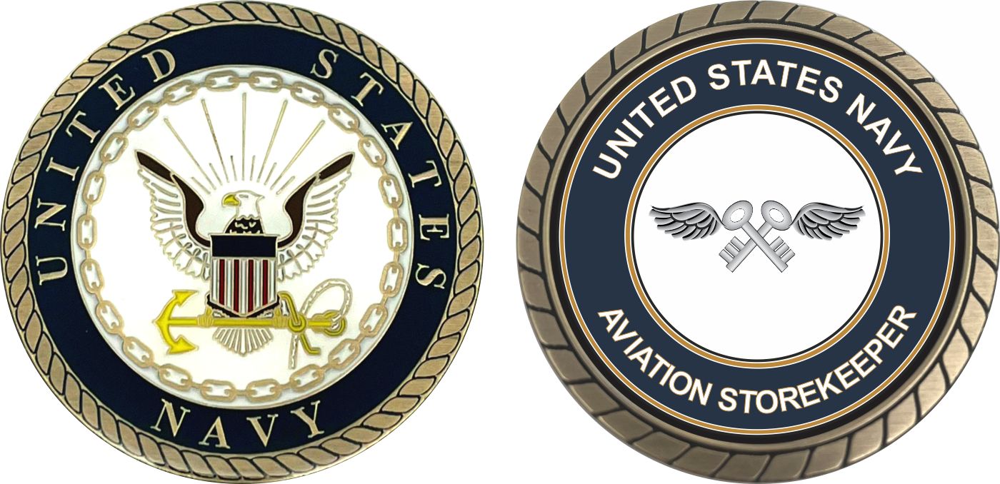 This 1 3/4” U.S. Navy Aviation Storekeeper AK Challenge Coin is proudly offered by MilitaryBest. This Officially Licensed Navy coin has beautiful enamel finish on one side and an organized crisp clean Aviation Storekeeper AK design on the opposite side.