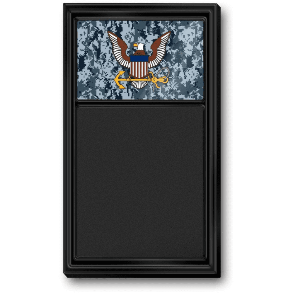 The United States Navy Chalk Note Board is perfect for keeping score or writing messages in any fan cave, game room, office or dorm. Our team chalkboard sign is injection molded with it's high-resolution digitally printed face, high gloss finish, and silk-screened dry erase surface and will provide hours of use while adding a finishing touch to any wall in the house. Mounting hardware and chalk included. This is an officially licensed product of the Navy and made in the USA.FEATURES
