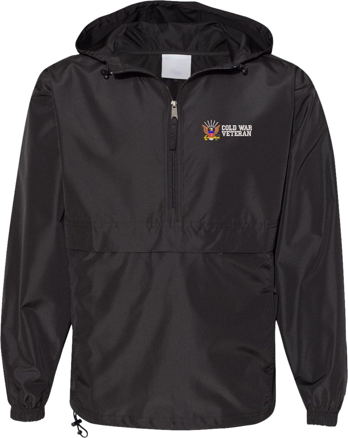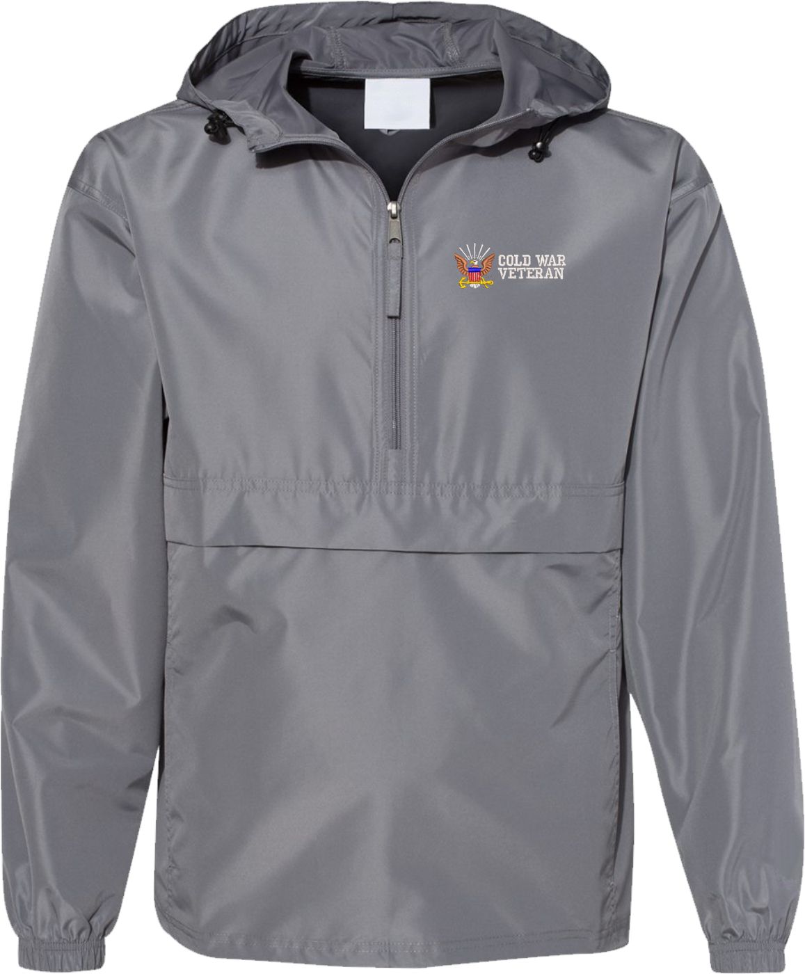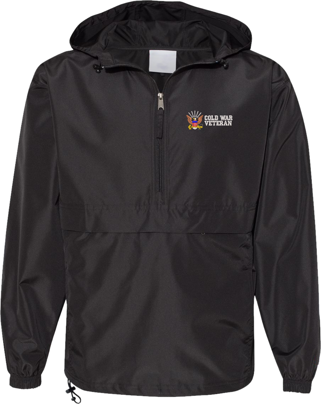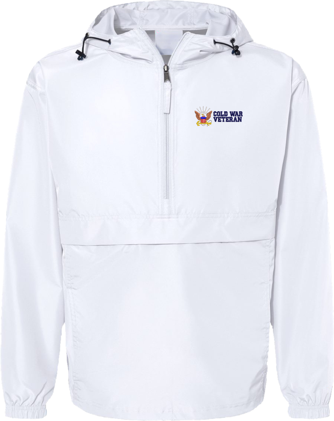 MilitaryBest is proud to offer this quality U.S. Navy Cold War Veteran Hooded Windbreaker. Also known as an Anorak Jacket, this windbreaker is designed to keep wind and water out. With a design embroidered over the left chest, this windbreaker is embroidered to order at our facilities in Scottsboro, AL.. This windbreaker can be packed into the mesh lined pouch pocket for a more portable method of storage.- 100% Polyester