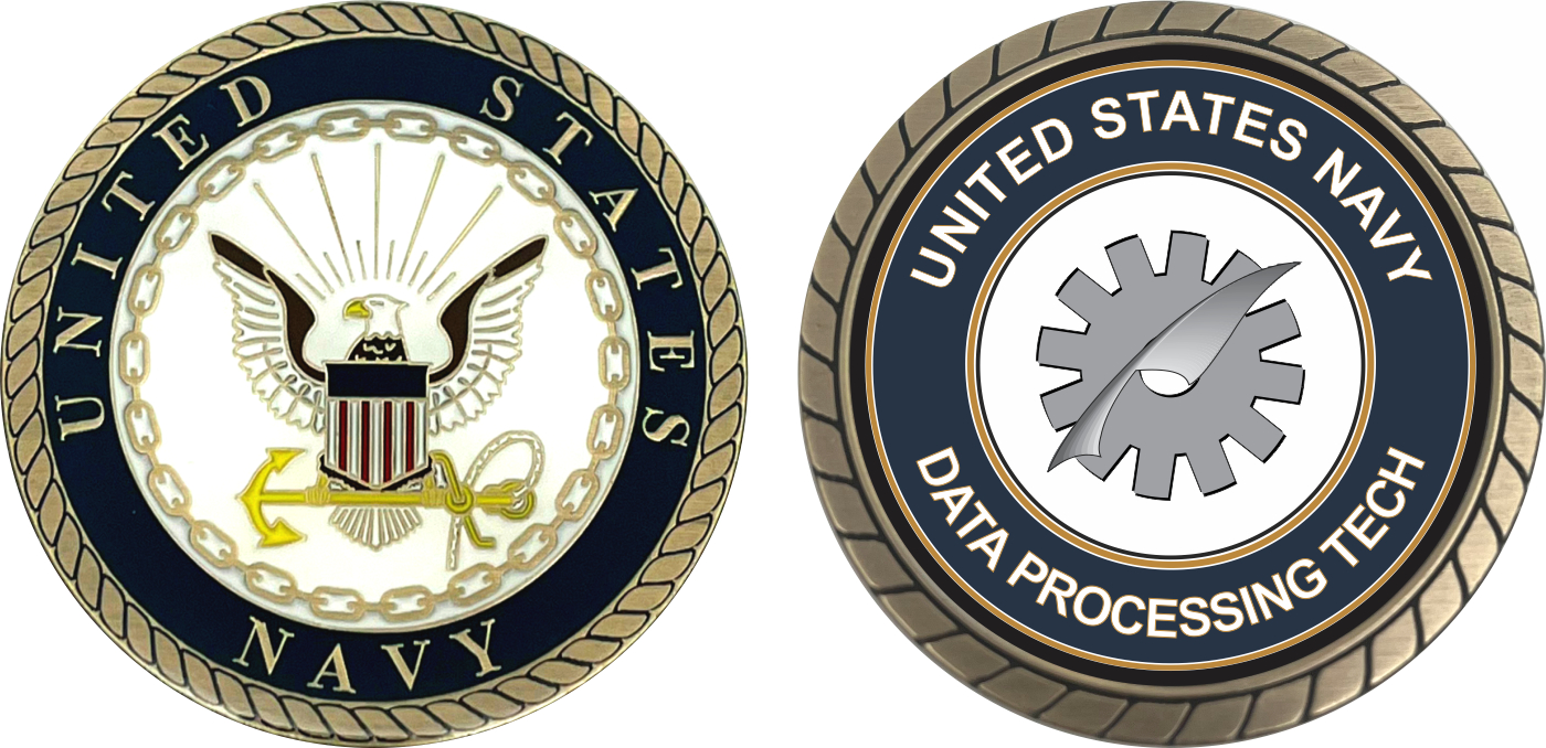 This 1 3/4” U.S. Navy Data Processing Tech DP Challenge Coin is proudly offered by MilitaryBest. This Officially Licensed Navy coin has beautiful enamel finish on one side and an organized crisp clean Data Processing Tech DP design on the opposite side.