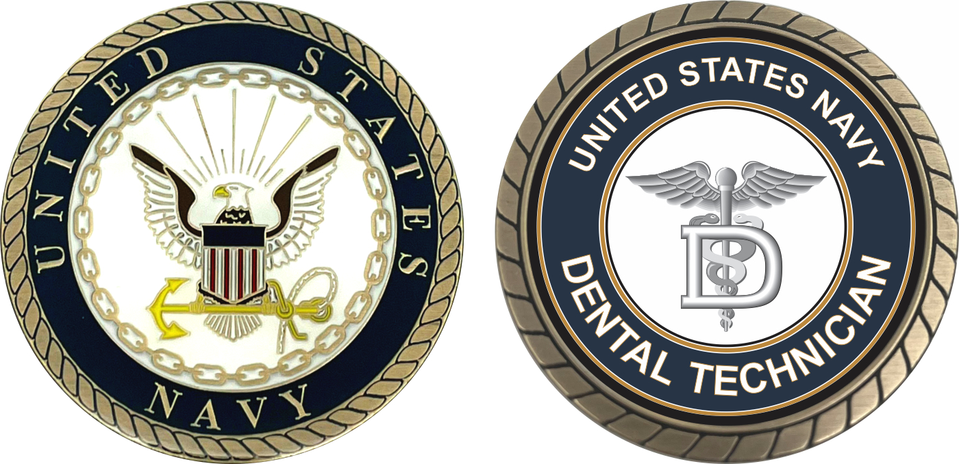 This 1 3/4” U.S. Navy Dental Technician DT Challenge Coin is proudly offered by MilitaryBest. This Officially Licensed Navy coin has beautiful enamel finish on one side and an organized crisp clean Dental Technician DT design on the opposite side.