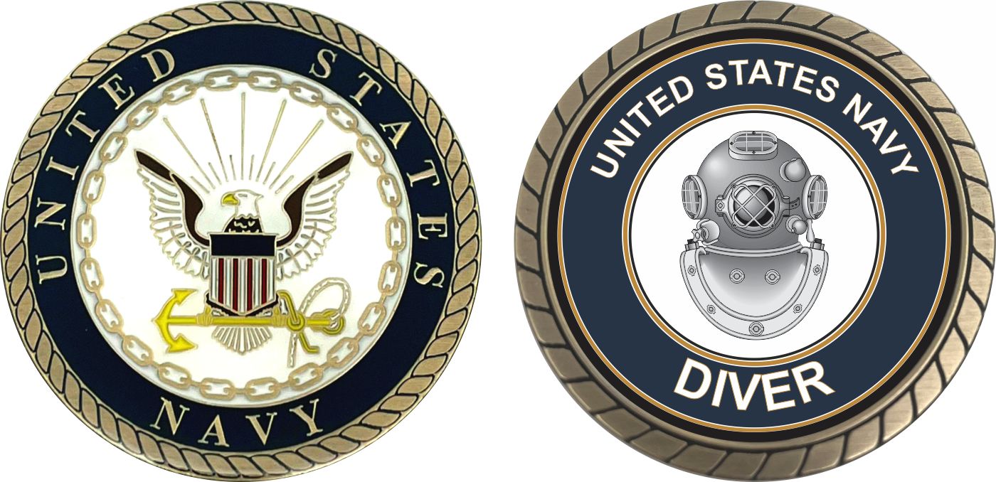 This 1 3/4” U.S. Navy Diver ND Challenge Coin is proudly offered by MilitaryBest. This Officially Licensed Navy coin has beautiful enamel finish on one side and an organized crisp clean Diver ND design on the opposite side.