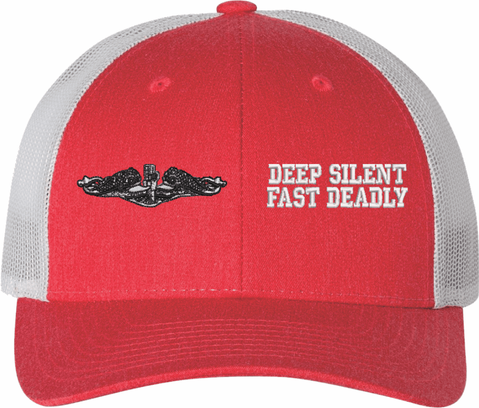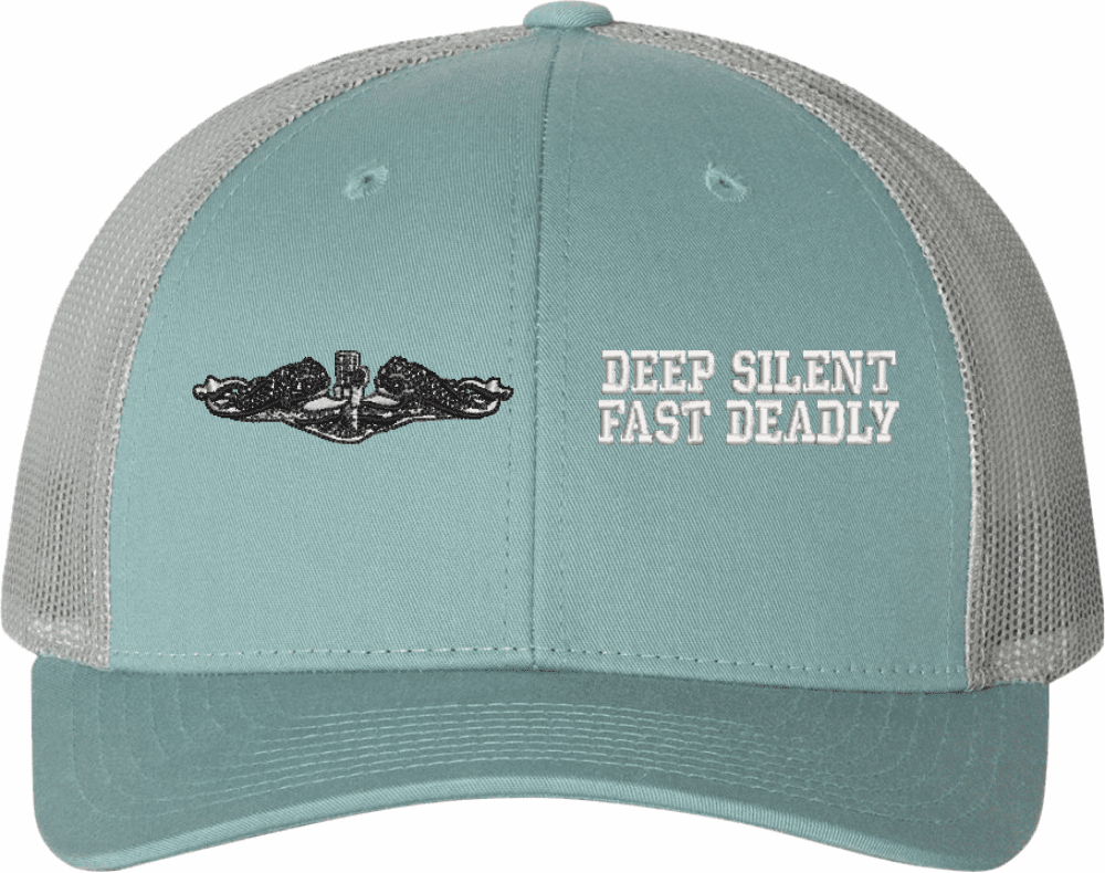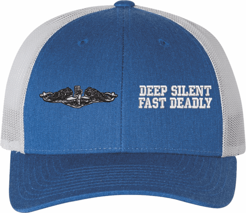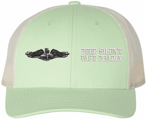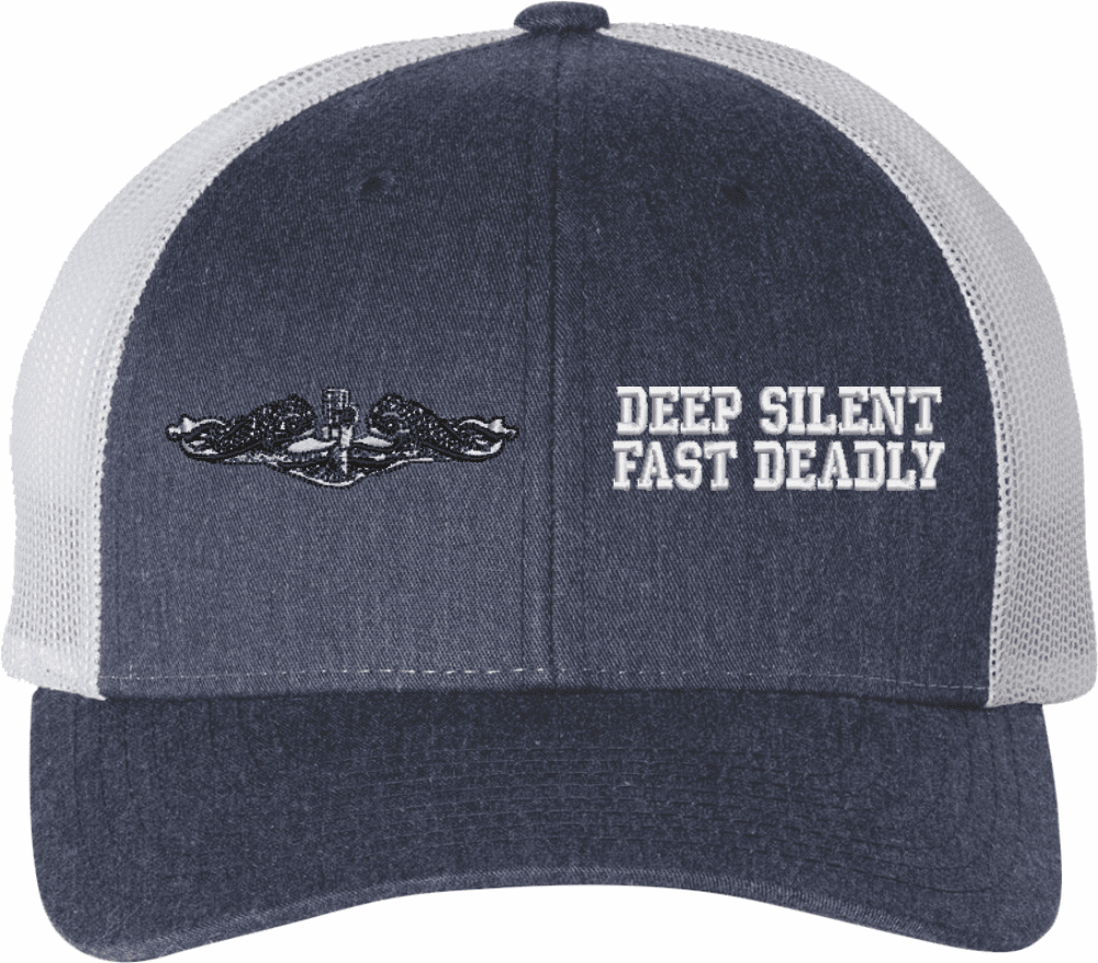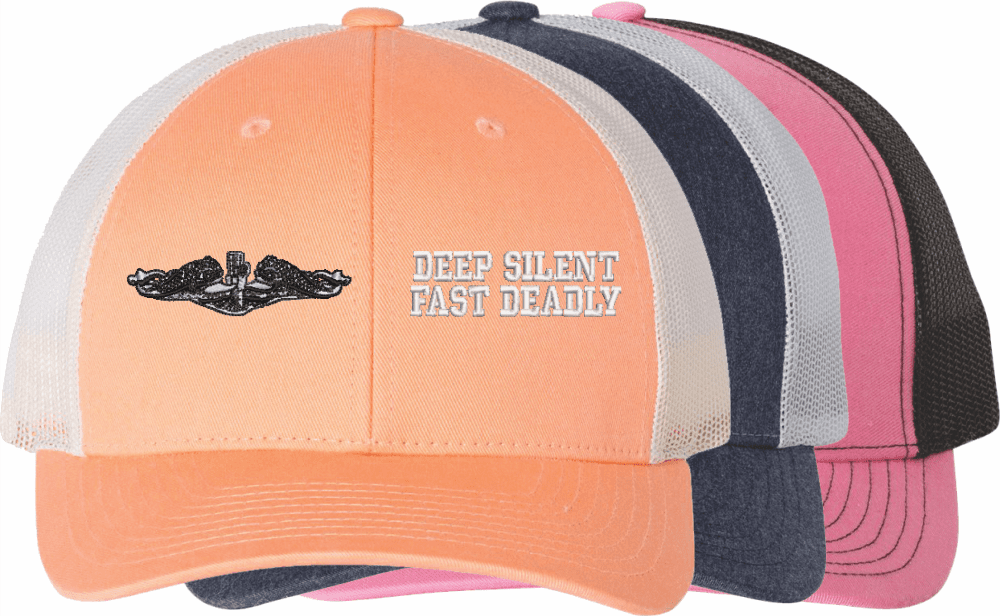 MilitaryBest is proud to offer this U.S. Navy Deep Silent Fast Deadly Dolphin Women's Split-Cap. The design of this Cap is crisp, clean, and sure to be loved by people of all ages! This Mesh Back Cap Design is crafted by our skilled embroidery technicians at our facilities in Scottsboro, Alabama. As with all MilitaryBest items, your satisfaction is guaranteed!Caps ordered with personalized embroidered back text requires an additional 1 to 2 days of production time. All personalized back text will be embroidered in ALL CAPITAL LETTERS. Caps personalized with back text are unreturnable unless there is a material defect in the cap.