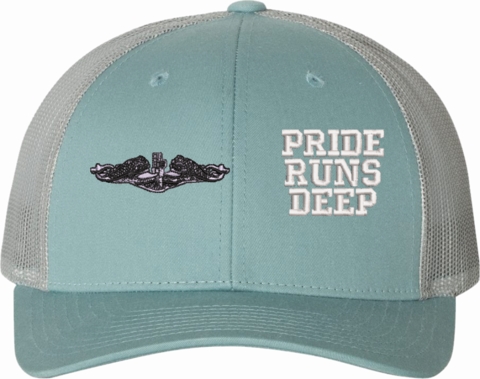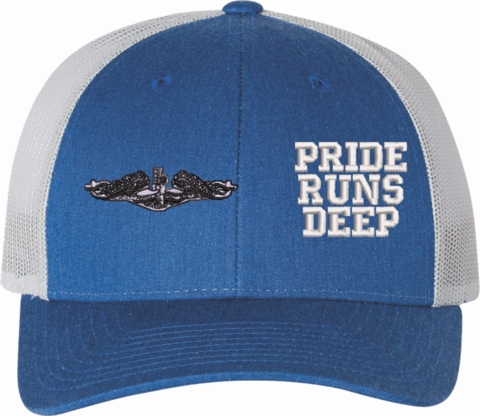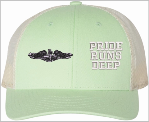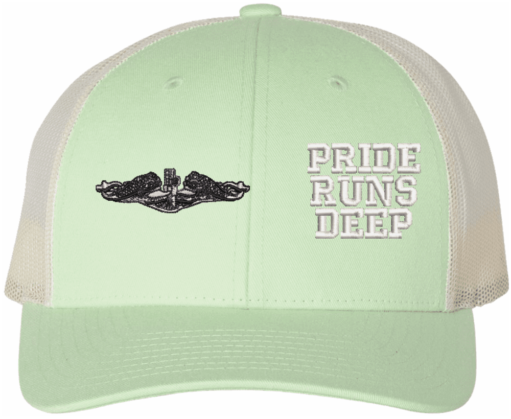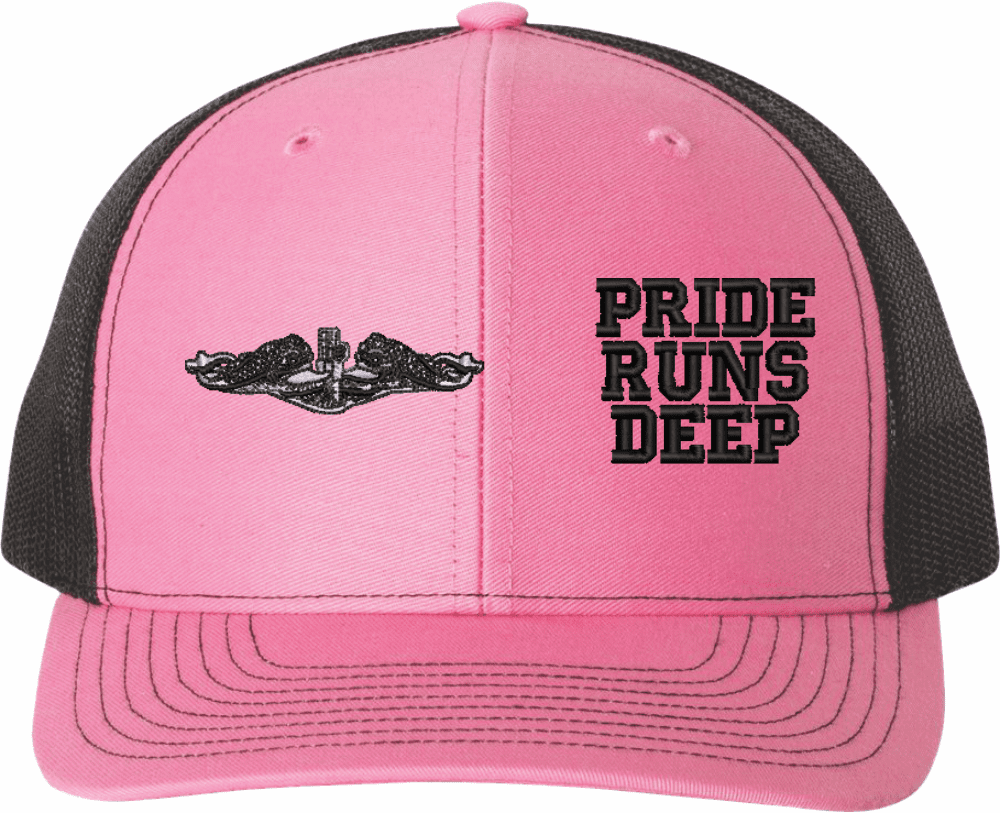 MilitaryBest is proud to offer this U.S. Navy Pride Runs Deep Dolphin Women's Split-Cap. The design of this Cap is crisp, clean, and sure to be loved by people of all ages! This Mesh Back Cap Design is crafted by our skilled embroidery technicians at our facilities in Scottsboro, Alabama. As with all MilitaryBest items, your satisfaction is guaranteed!Caps ordered with personalized embroidered back text requires an additional 1 to 2 days of production time. All personalized back text will be embroidered in ALL CAPITAL LETTERS. Caps personalized with back text are unreturnable unless there is a material defect in the cap.