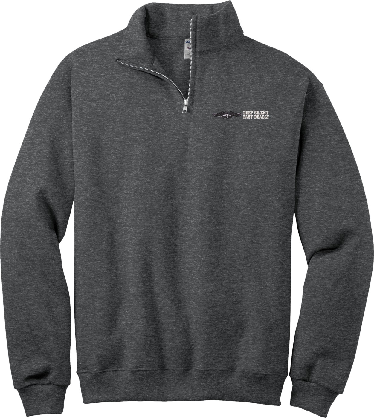 MilitaryBest is proud to offer this U.S. Navy Dolphins Deep Silent Fast Deadly Embroidered Quarter-Zip Pullover. This quality shirt is embroidered by our MilitaryBest team in Northeast Alabama.PRODUCT FEATURES