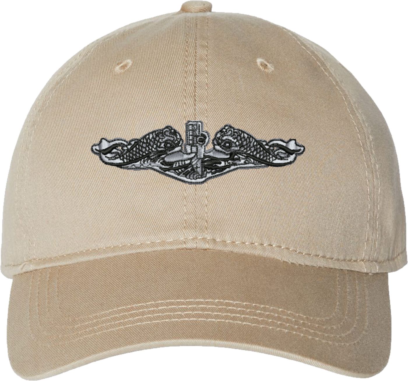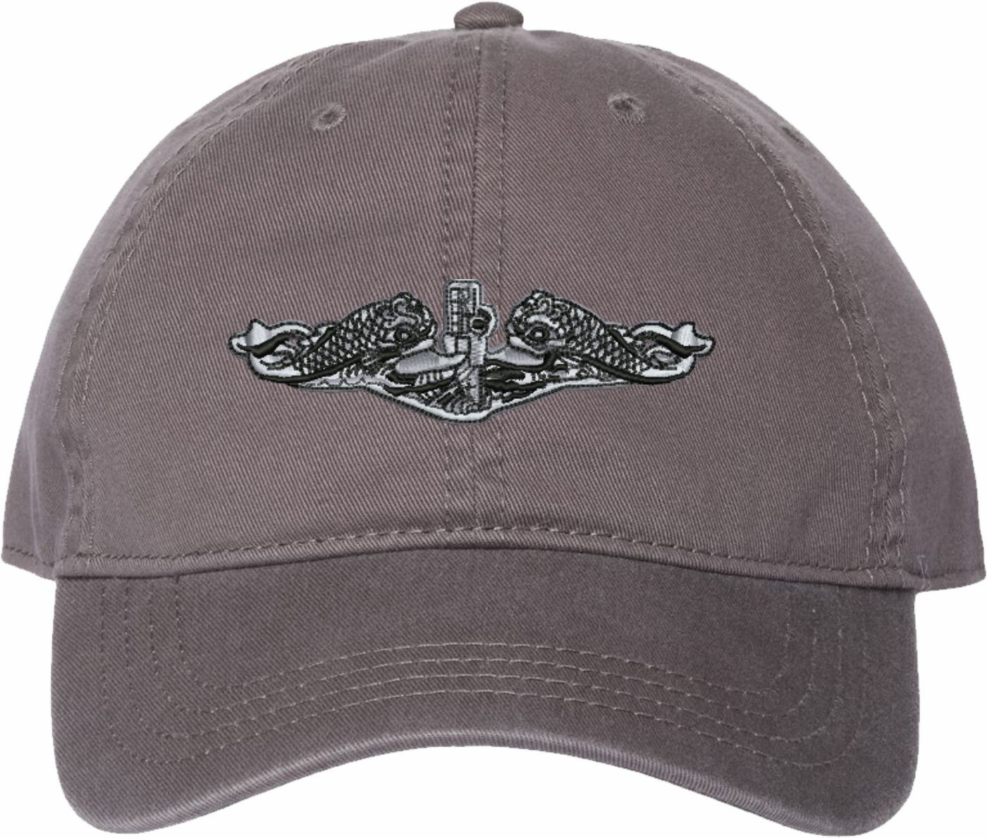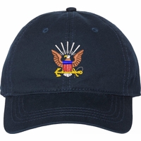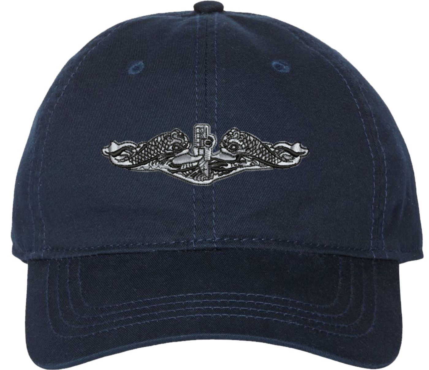 Show your Navy pride with this U.S. Navy Dolphins Unstructured Dad Cap from MilitaryBest. Also known as an "Old Salt" Cap, This hat was crafted from 100% washed chino twill cotton, this six-panel, low-profile cap offers a relaxed and comfortable fit. Featuring high-quality embroidery done in our Scottsboro, Alabama facility, this cap is designed with a pre-curved visor and an adjustable tri-glide buckle closure for a perfect fit. Whether for everyday wear or as a meaningful gift, this cap is a great way to honor your own or a loved one's service.For caps ordered with custom embroidered personalized text please allow an additional 3 to 5 days production time. All custom back text will be embroidered in ALL CAPITAL LETTERS. Caps with back text or eggs are non-returnable unless there is a material defect in the cap.