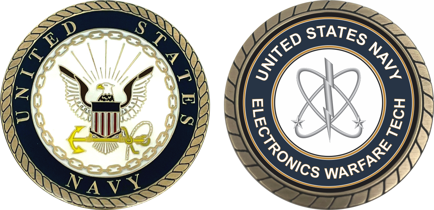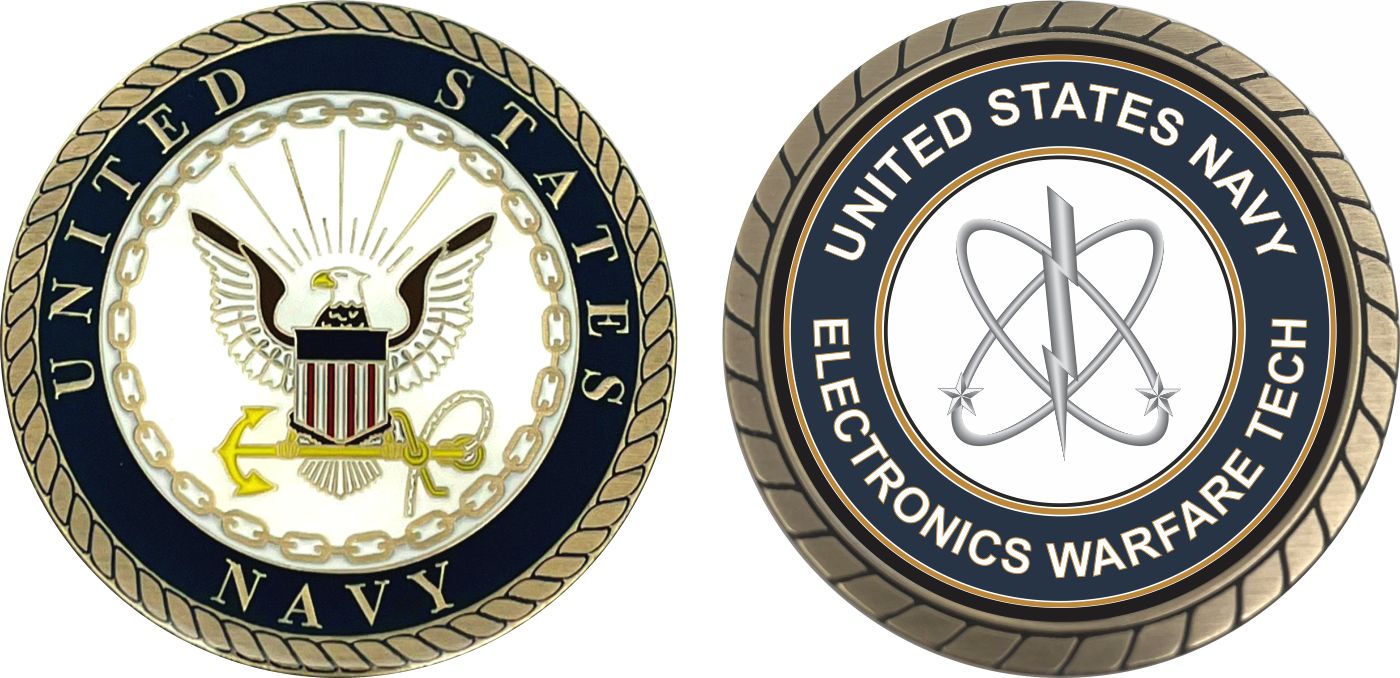 This 1 3/4” U.S. Navy Electronics Warfare Technician EW Challenge Coin is proudly offered by MilitaryBest. This Officially Licensed Navy coin has beautiful enamel finish on one side and an organized crisp clean Electronics Warfare Technician EW design on the opposite side.