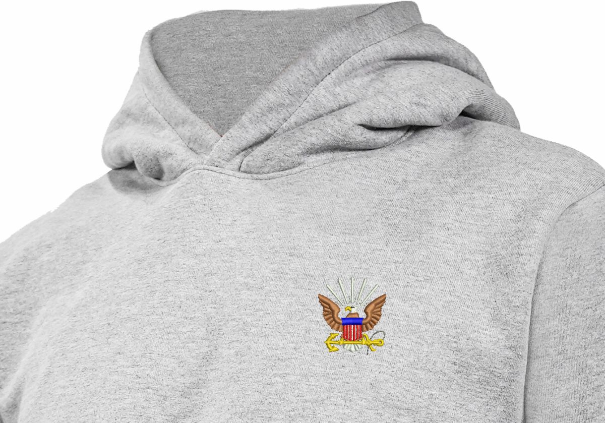 Striving to provide you with the highest quality apparel made in the United States, MilitaryBest is proud to offer this U.S. Navy Emblem Heavy Weight Fleece Hoodie. Manufactured by WSI Sportswear in Minnesota and Embroidered by us here at MilitaryBest in Alabama; this fleece hoodie is 100% Made in the USA! We aim to provide you with soft, comfortable, dry-fit, American-made clothing that allows you to be your best.*For washing we recommend machine wash cold with like colors, and line dry.PRODUCT FEATURES