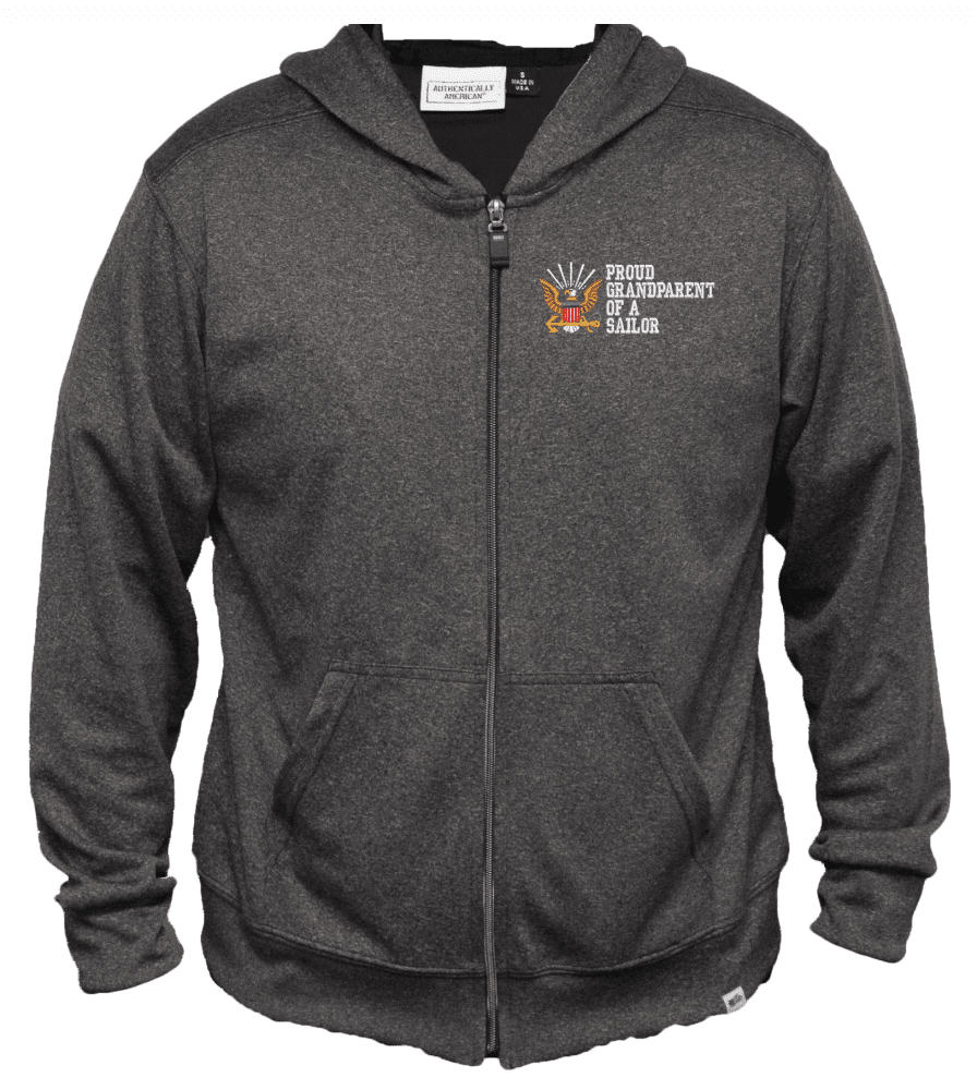 MilitaryBest proudly offers this top-quality Proud GrandParent of a Sailor U.S. Navy Men's 100% Polyester Heather Grey Full-Zip Hoodie. We have proudly partnered with Authentically American to offer you this Made in the USA Hoodie. Water & wrinkle resistance make this zip hoodie the perfect layering piece from the golf course to you favorite travel destination.As with all MilitaryBest items, our designs are Officially Licensed. A percentage of the sale of each MilitaryBest item is forwarded to the licensing department in support of it's MWR (Morale, Welfare, & Recreation) program. These payments are made by either ALL4U LLC or the wholesaler from where the item originated. Our team thanks you for your service and your support of these programs.