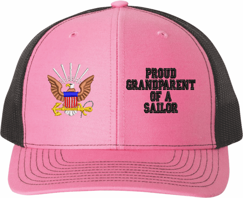 MilitaryBest is proud to offer this Mesh Back U.S. Navy Emblem Proud GrandParent of a Sailor Women's Split-Cap. The design is embroidered onto a 6x panel mid/low profile mesh back cap and is crisp, clean, and sure to be loved by all! As with all MilitaryBest caps and apparel your satisfaction is guaranteed!Caps ordered with embroidered back text requires an additional 1 to 2 days of production time. All personalized caps will be embroidered in ALL CAPITAL LETTERS. Caps personalized with back text are not returnable unless there is a material defect in the cap.