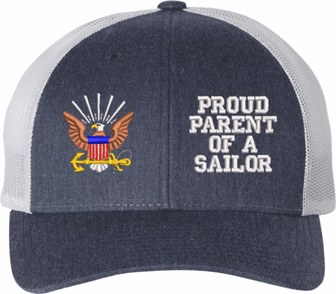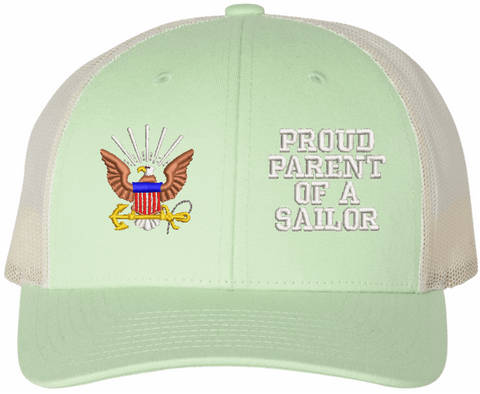MilitaryBest is proud to offer this Mesh Back U.S. Navy Emblem Proud Parent of a Sailor Women's Split-Cap. The design is embroidered onto a 6x panel mid/low profile mesh back cap and is crisp, clean, and sure to be loved by all! As with all MilitaryBest caps and apparel your satisfaction is guaranteed!Caps ordered with embroidered back text requires an additional 1 to 2 days of production time. All personalized caps will be embroidered in ALL CAPITAL LETTERS. Caps personalized with back text are not returnable unless there is a material defect in the cap.