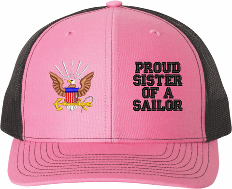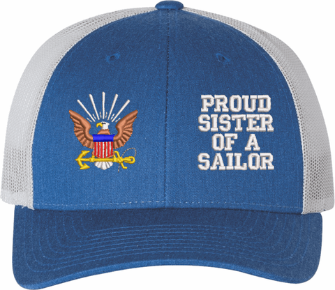 MilitaryBest is proud to offer this Mesh Back U.S. Navy Emblem Proud Sister of a Sailor Women's Split-Cap. The design is embroidered onto a 6x panel mid/low profile mesh back cap and is crisp, clean, and sure to be loved by all! As with all MilitaryBest caps and apparel your satisfaction is guaranteed!Caps ordered with embroidered back text requires an additional 1 to 2 days of production time. All personalized caps will be embroidered in ALL CAPITAL LETTERS. Caps personalized with back text are not returnable unless there is a material defect in the cap.
