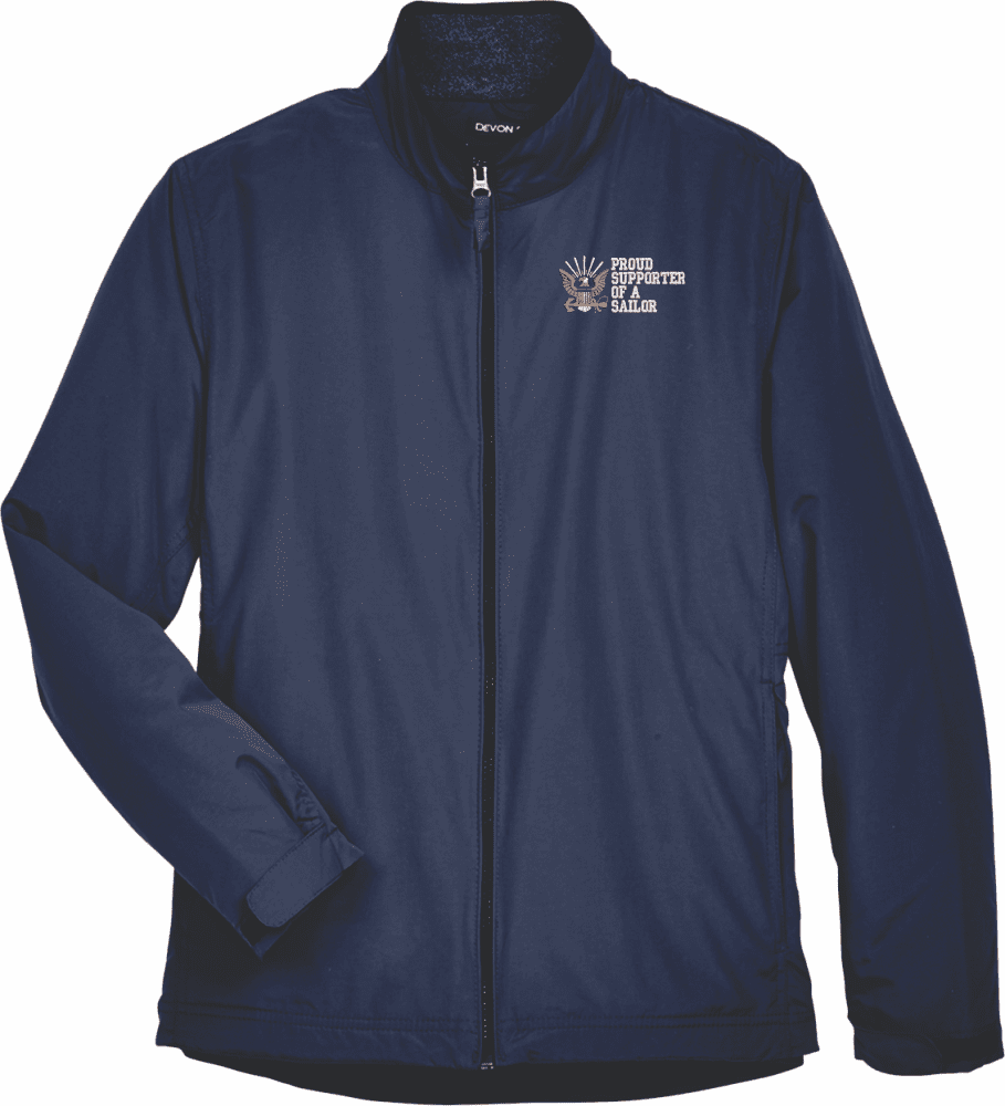 MilitaryBest is proud to offer this U.S. Navy Emblem Proud Supporter of a Sailor Women's Devon & Jones Jacket. Each ladies three season jacket is made from a 3-Layer system consisting of a nylon shell, an insulator layer, Nylon-lined sleeves, and an inside layer of fleece for comfort. Each jacket’s features include a sturdy black enamel front-zipper, raglan sleeves, outsize zip pockets, an inside zip security pocket, YKK zippers, and a banded-bottom. As with all MilitaryBest products, your satisfaction is guaranteed!| S | M | L | XL | 2XL | |