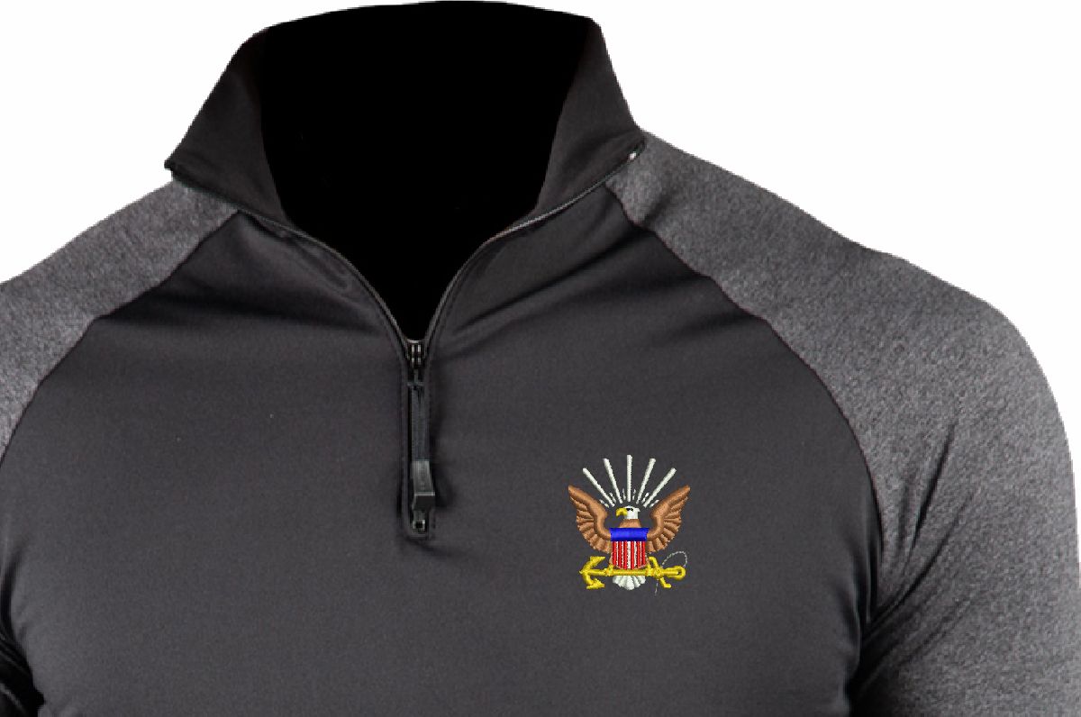 Striving to provide you with the highest quality apparel made in the United States, MilitaryBest is proud to offer this U.S. Navy Emblem ProWikMax® 2-Tone 1/4 Zip Knit Long Sleeve Shirt. Manufactured by WSI Sportswear in Minnesota and Embroidered by us here at MilitaryBest in Alabama; this shirt is 100% Made in the USA! We aim to provide you with soft, comfortable, dry-fit, American-made clothing that allows you to be your best. ProWikMax® is 92% Polyester, 8% Spandex, and made to be both durable and flattering.*For washing we recommend machine wash cold with like colors, and line dry.PRODUCT FEATURES