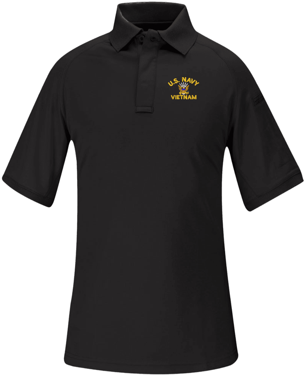 Note: Some of the Color Options pictured may not be available. Available Color Options are listed on the drop down menu above.MilitaryBest has expanded its line of apparel with this custom embroidered U.S. Navy Vietnam Propper Snag Free Polo. Each polo is made using a Propper Snag Free 100% polyester moisture wicking material. This U.S. Navy Vietnam Propper Snag Free Polo will make an excellent addition to your wardrobe, or a great gift. Your satisfaction is guaranteed! Each U.S. Navy Vietnam Propper Snag Free Polo is directly embroidered at our facilities in Scottsboro, AL.