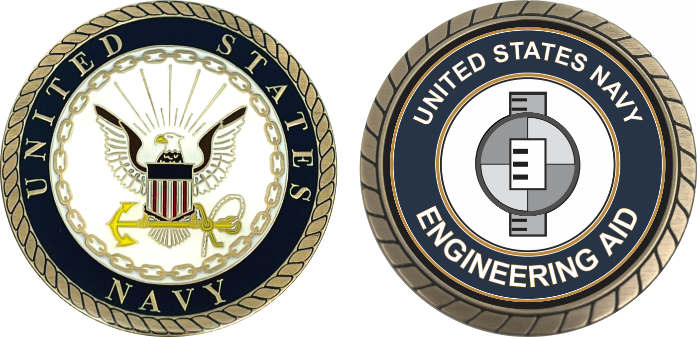 This 1 3/4” U.S. Navy Engineering Aid EA Challenge Coin is proudly offered by MilitaryBest. This Officially Licensed Navy coin has beautiful enamel finish on one side and an organized crisp clean Engineering Aid EA design on the opposite side.