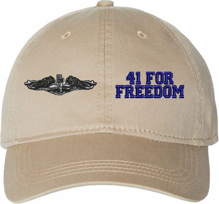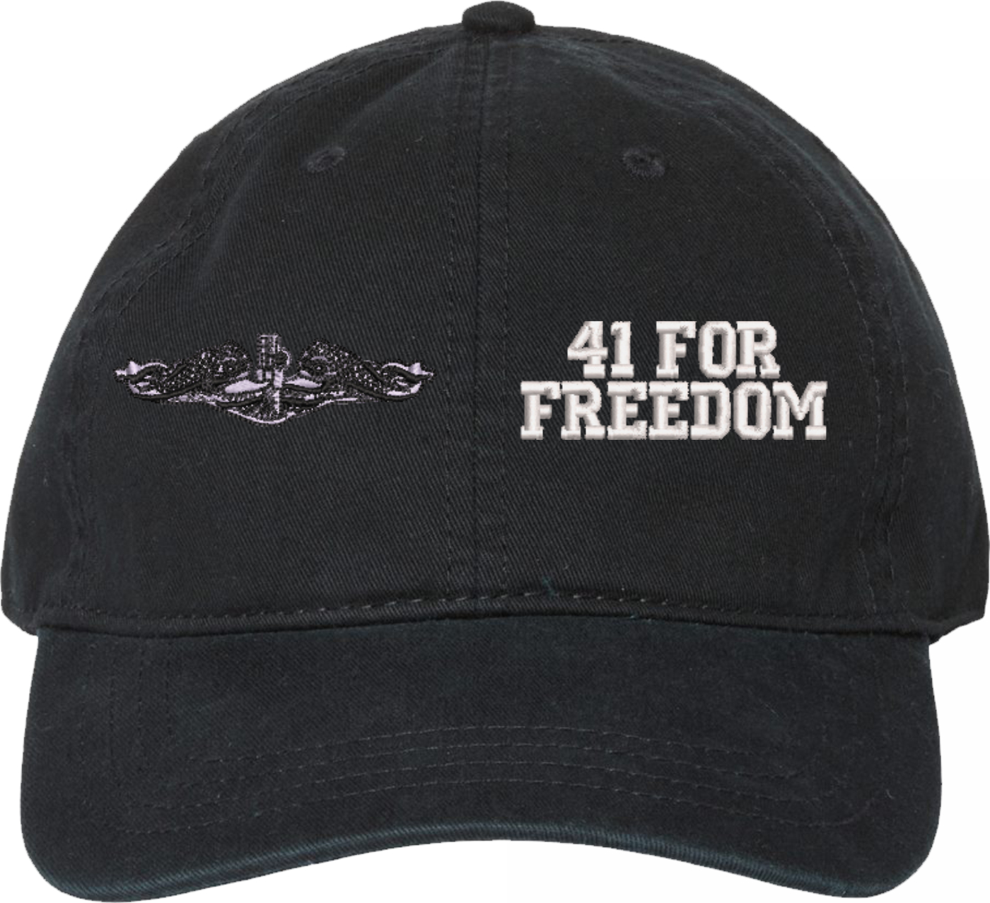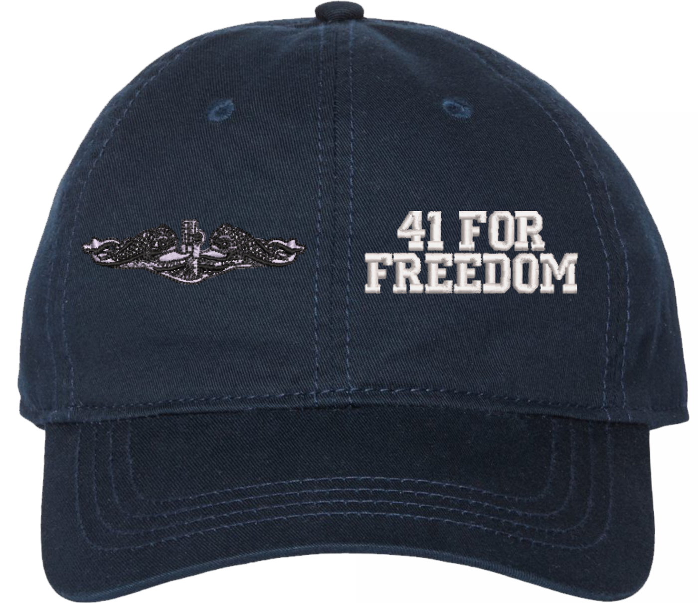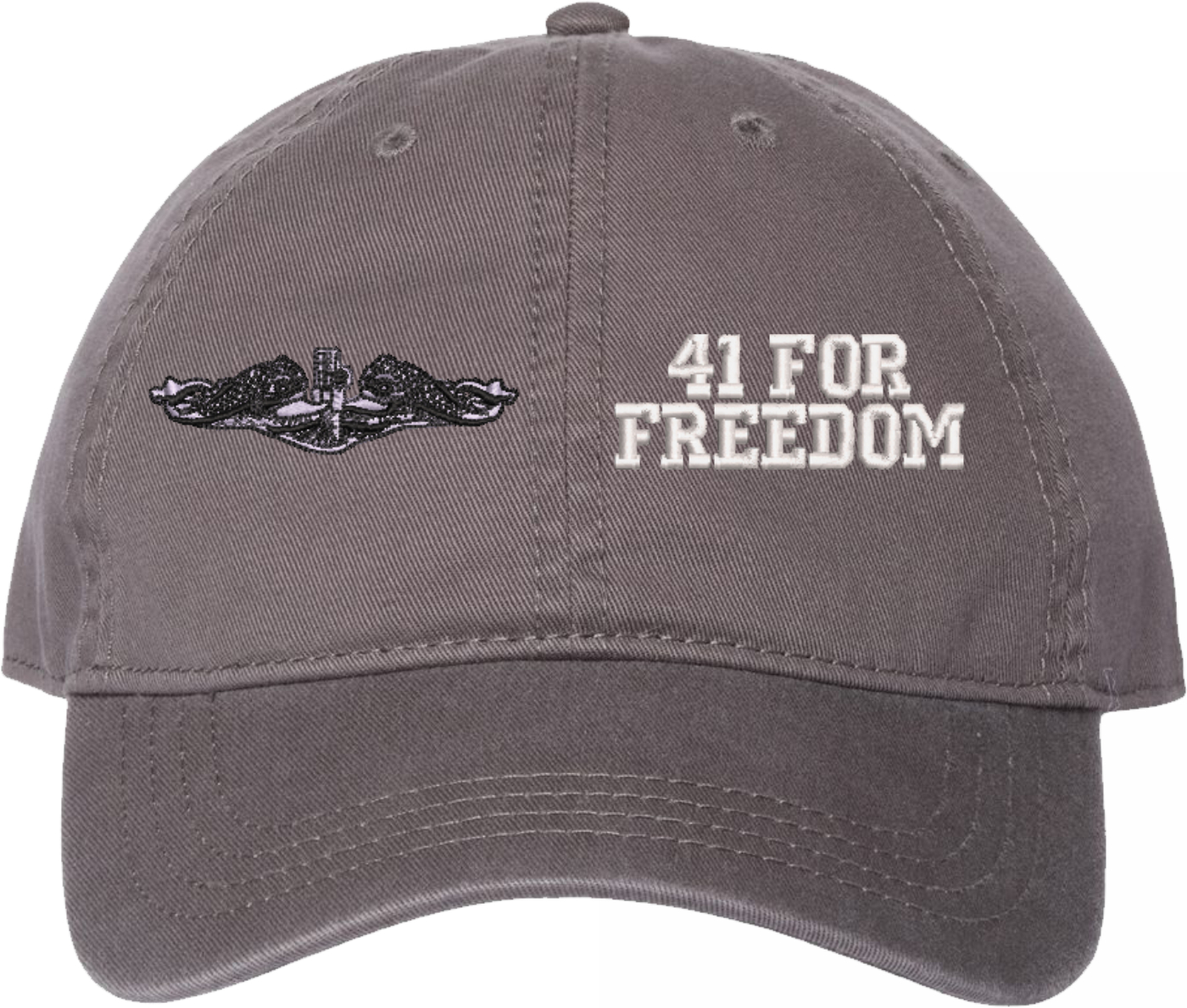 Show your Navy pride with this U.S. Navy Enlisted Silver Dolphins 41 For Freedom Unstructured Dad Cap from MilitaryBest. Crafted from 100% washed chino twill cotton, this six-panel, low-profile cap offers a relaxed and comfortable fit. Featuring high-quality embroidery done in our Scottsboro, Alabama facility, this cap is designed with a pre-curved visor and an adjustable tri-glide buckle closure for a perfect fit. Whether for everyday wear or as a meaningful gift, this cap is a great way to honor your own or a loved one's service.For caps ordered with custom embroidered personalized text please allow an additional 3 to 5 days production time. All custom back text will be embroidered in ALL CAPITAL LETTERS. Caps with back text or eggs are non-returnable unless there is a material defect in the cap.