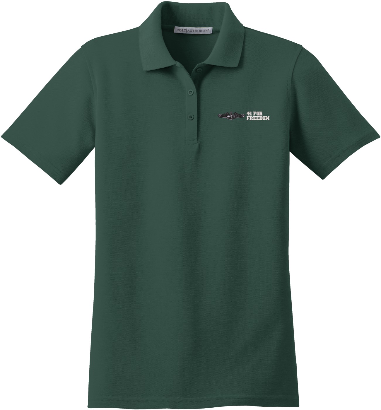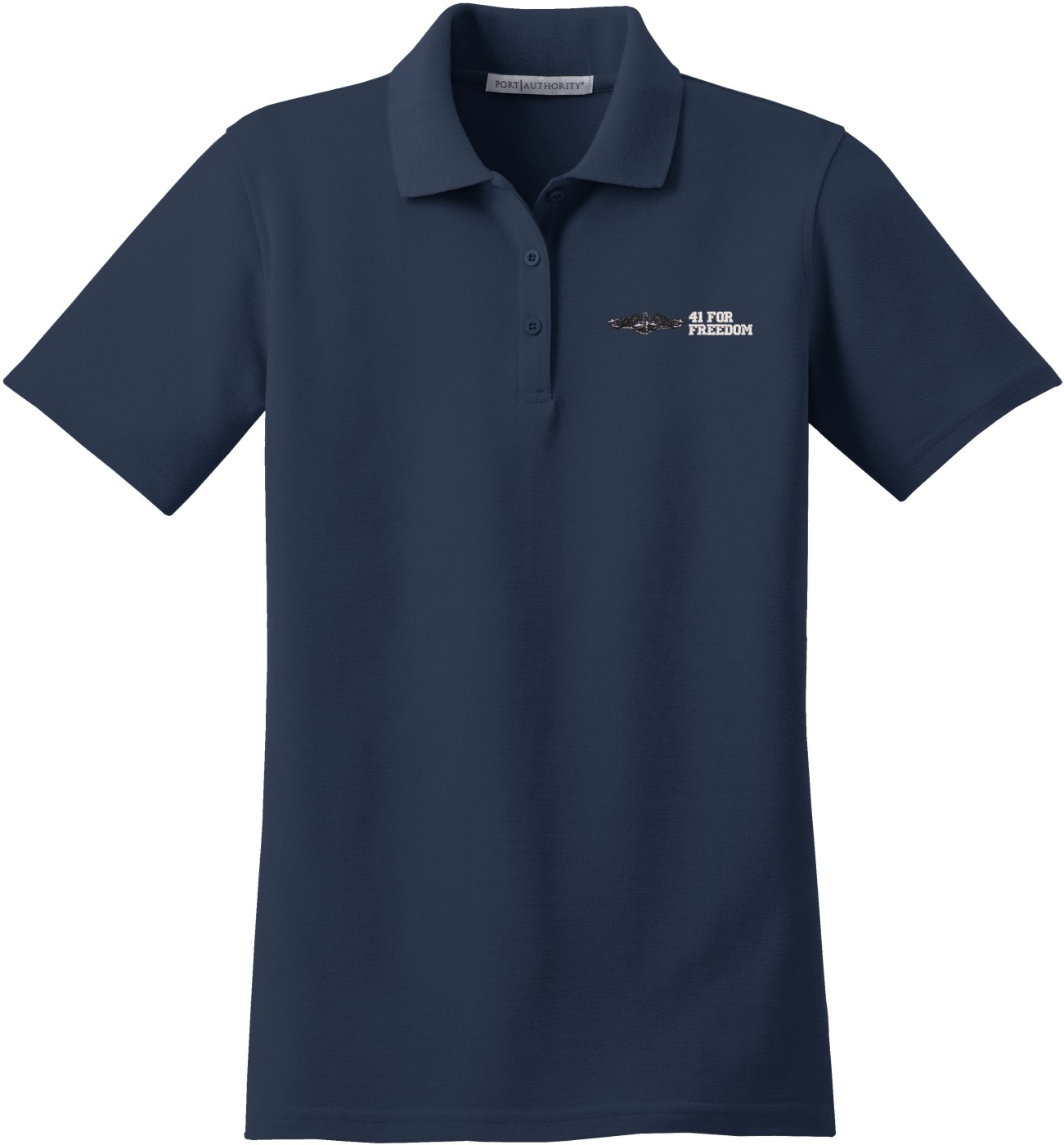MilitaryBest is proud to offer this U.S. Navy Enlisted Silver Dolphins 41 For Freedom Women's Stain-Release Polo. This polo is embroidered by our MilitaryBest team in Northeast Alabama. These polos are made with a stain-release finish for long-lasting wear, odor-fighting properties, and superior wrinkle and shrink resistance.Care Instructions: Machine Wash Cold With Like Colors. Do Not Use Fabric Softener. Do Not Bleach. Tumble Dry Low. Warm Iron If Necessary.