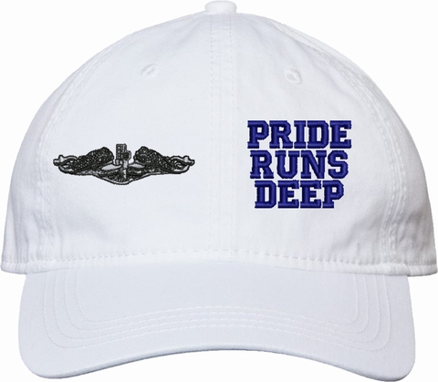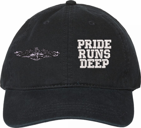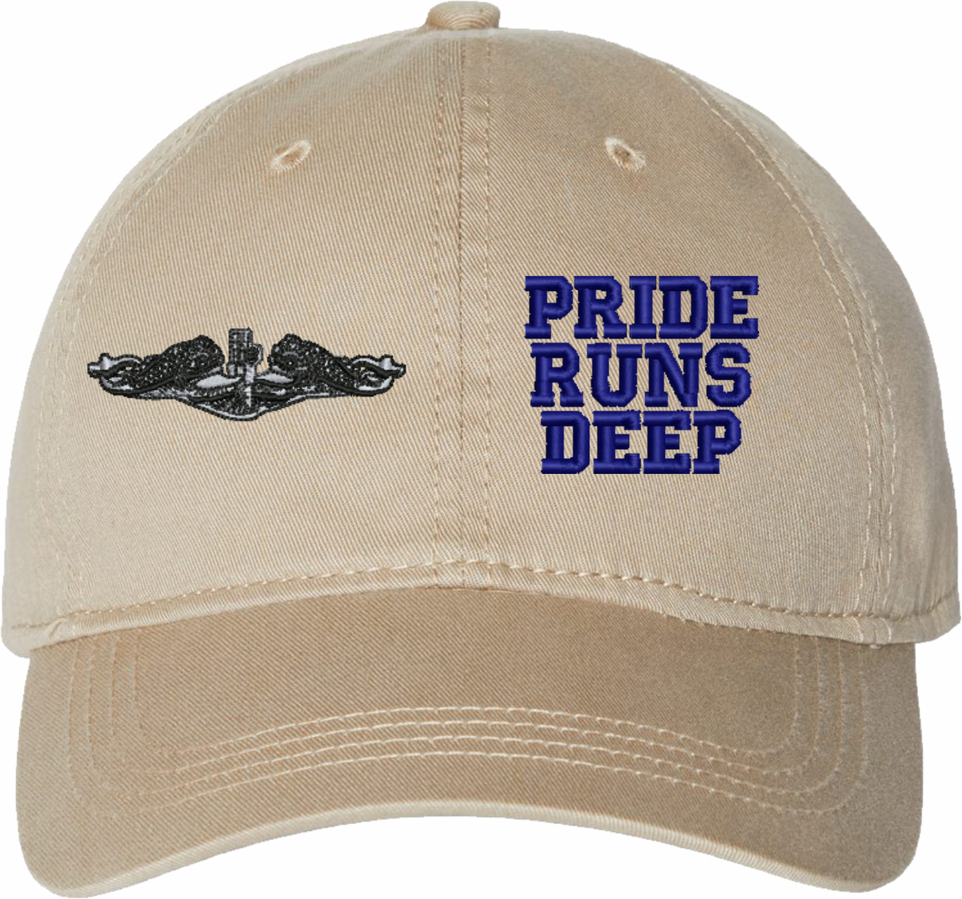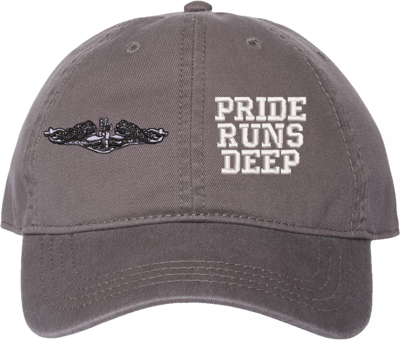 Show your Navy pride with this U.S. Navy Enlisted Silver Dolphins Pride Runs Deep Unstructured Dad Cap from MilitaryBest. Crafted from 100% washed chino twill cotton, this six-panel, low-profile cap offers a relaxed and comfortable fit. Featuring high-quality embroidery done in our Scottsboro, Alabama facility, this cap is designed with a pre-curved visor and an adjustable tri-glide buckle closure for a perfect fit. Whether for everyday wear or as a meaningful gift, this cap is a great way to honor your own or a loved one's service.For caps ordered with custom embroidered personalized text please allow an additional 3 to 5 days production time. All custom back text will be embroidered in ALL CAPITAL LETTERS. Caps with back text or eggs are non-returnable unless there is a material defect in the cap.