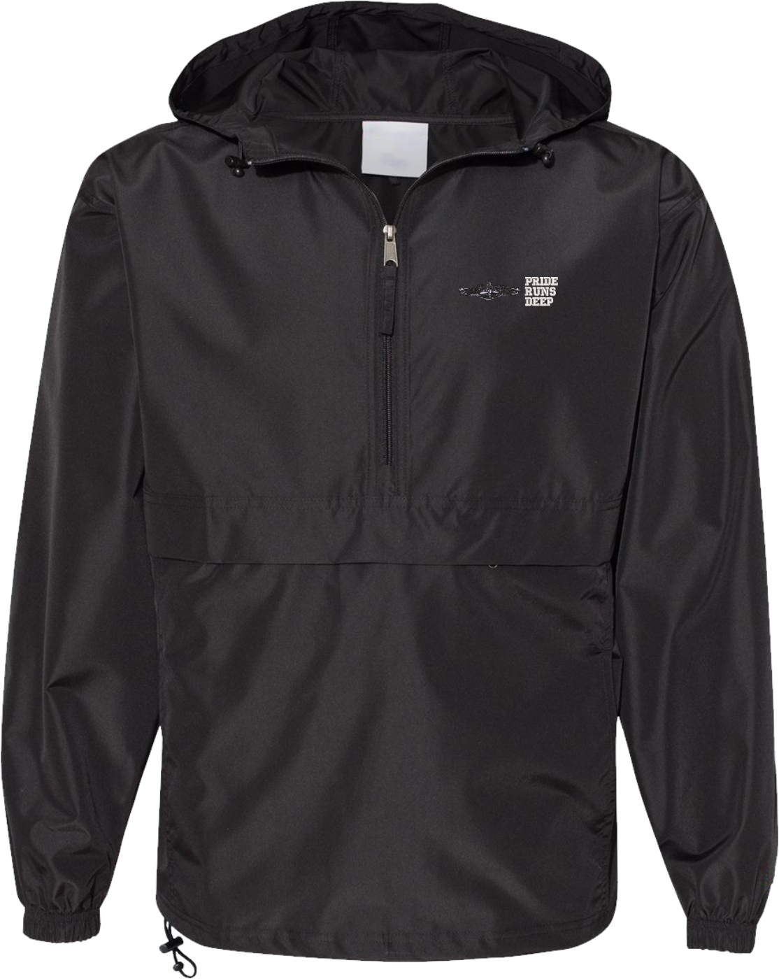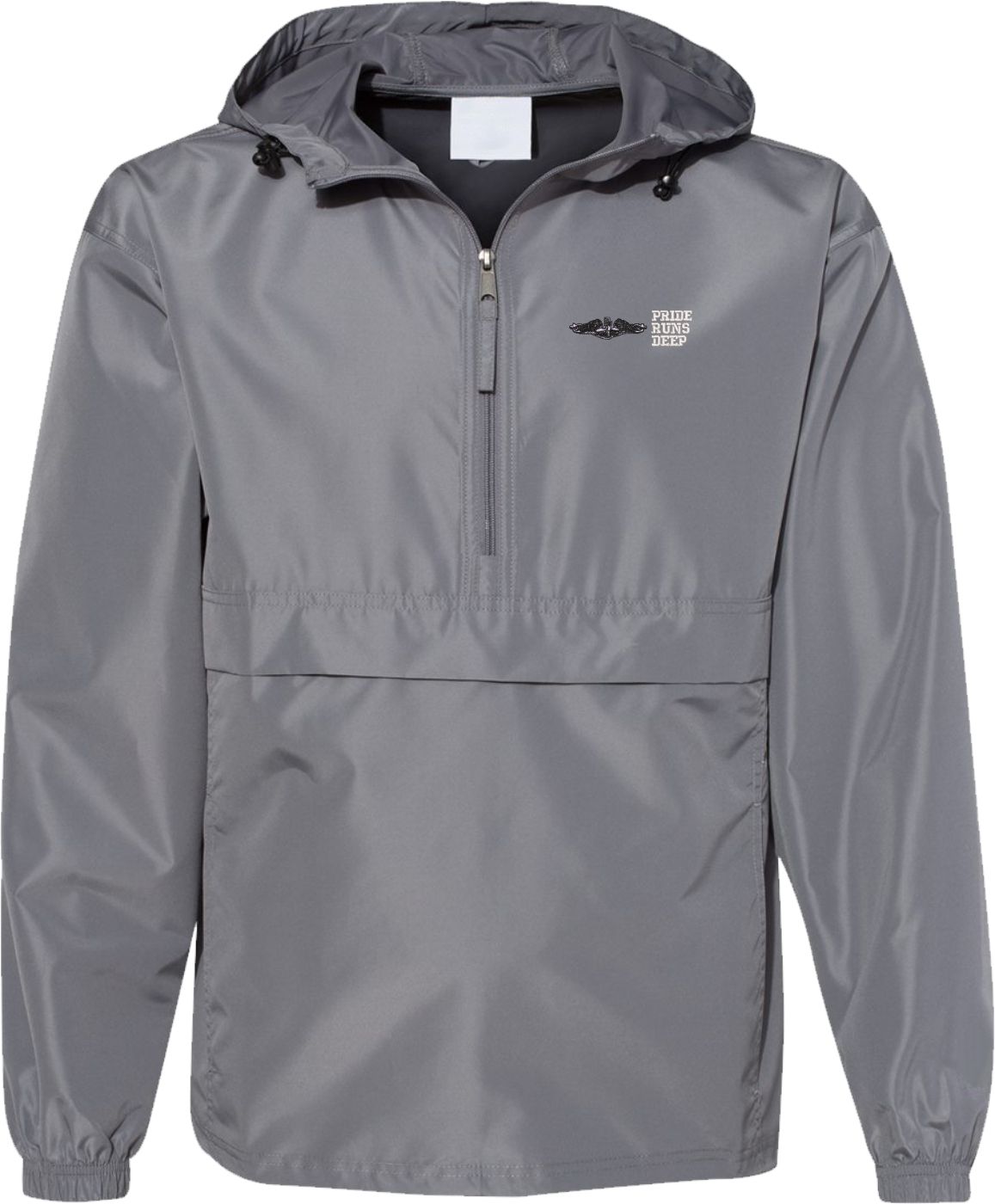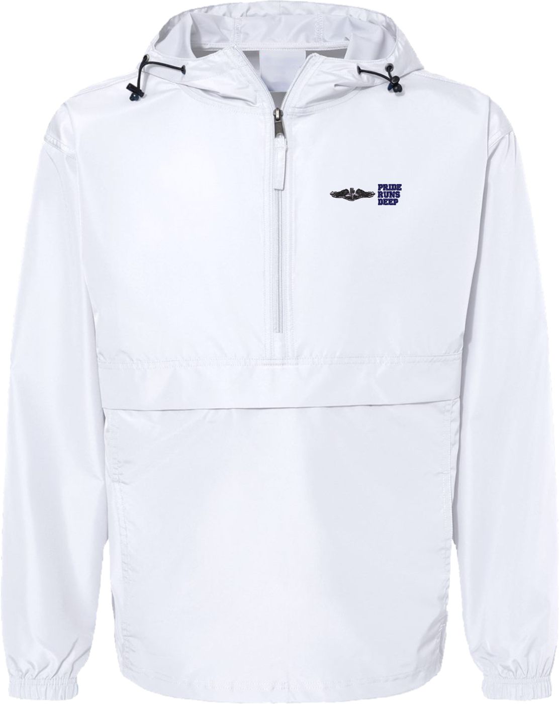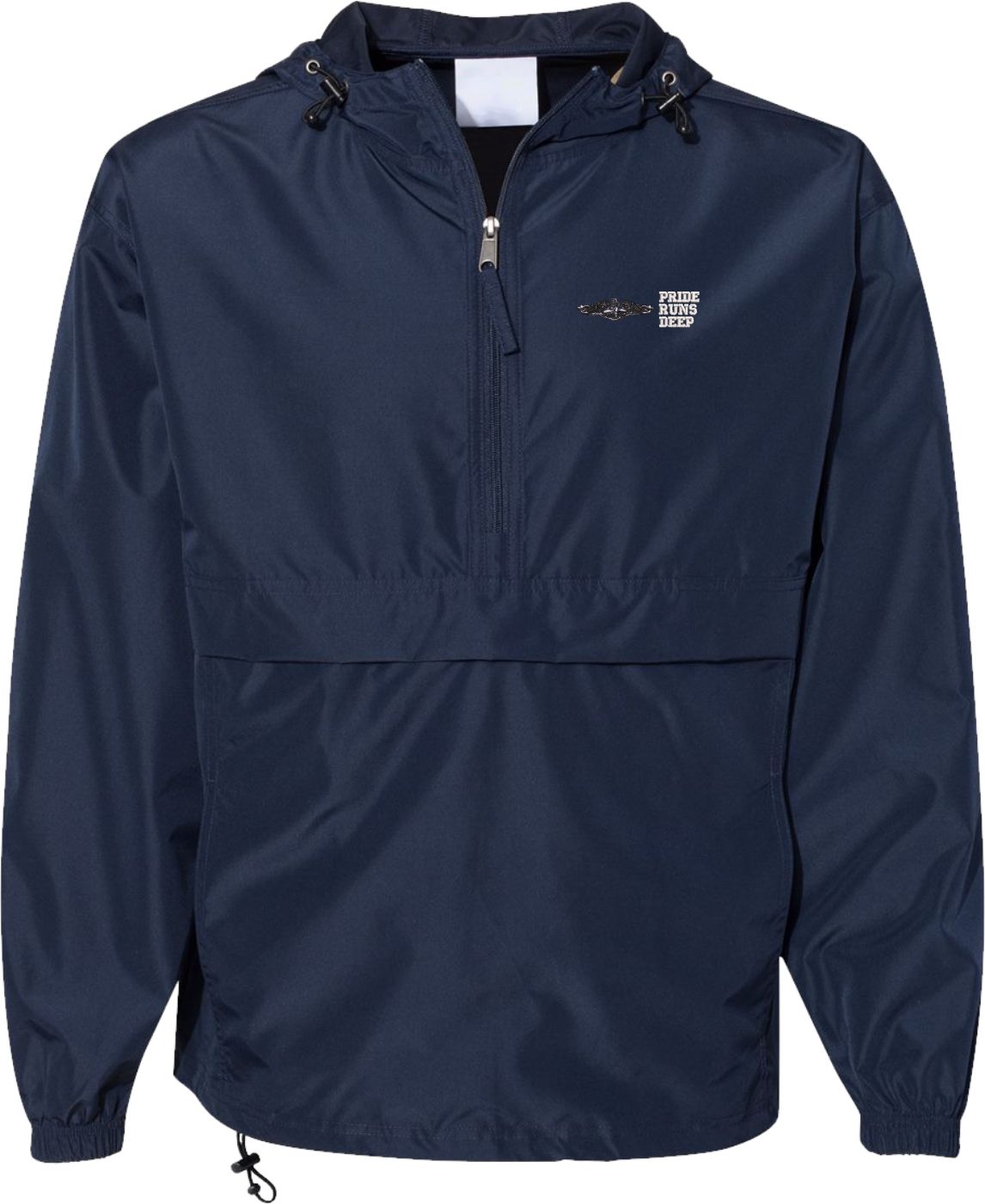 MilitaryBest is proud to offer this quality U.S. Navy Enlisted Silver Dolphins Pride Runs Deep Hooded Windbreaker. Also known as an Anorak Jacket, this windbreaker is designed to keep wind and water out. With a design embroidered over the left chest, this windbreaker is embroidered to order at our facilities in Scottsboro, AL.. This windbreaker can be packed into the mesh lined pouch pocket for a more portable method of storage.- 100% Polyester