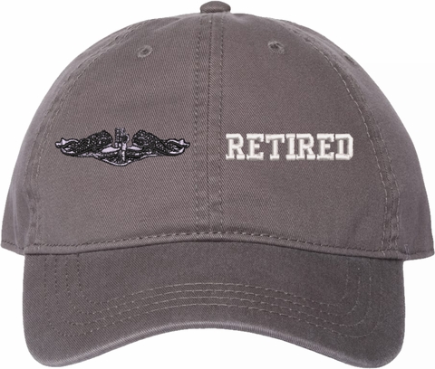 Show your Navy pride with this U.S. Navy Enlisted Silver Dolphins Retired Unstructured Dad Cap from MilitaryBest. Crafted from 100% washed chino twill cotton, this six-panel, low-profile cap offers a relaxed and comfortable fit. Featuring high-quality embroidery done in our Scottsboro, Alabama facility, this cap is designed with a pre-curved visor and an adjustable tri-glide buckle closure for a perfect fit. Whether for everyday wear or as a meaningful gift, this cap is a great way to honor your own or a loved one's service.For caps ordered with custom embroidered personalized text please allow an additional 3 to 5 days production time. All custom back text will be embroidered in ALL CAPITAL LETTERS. Caps with back text or eggs are non-returnable unless there is a material defect in the cap.