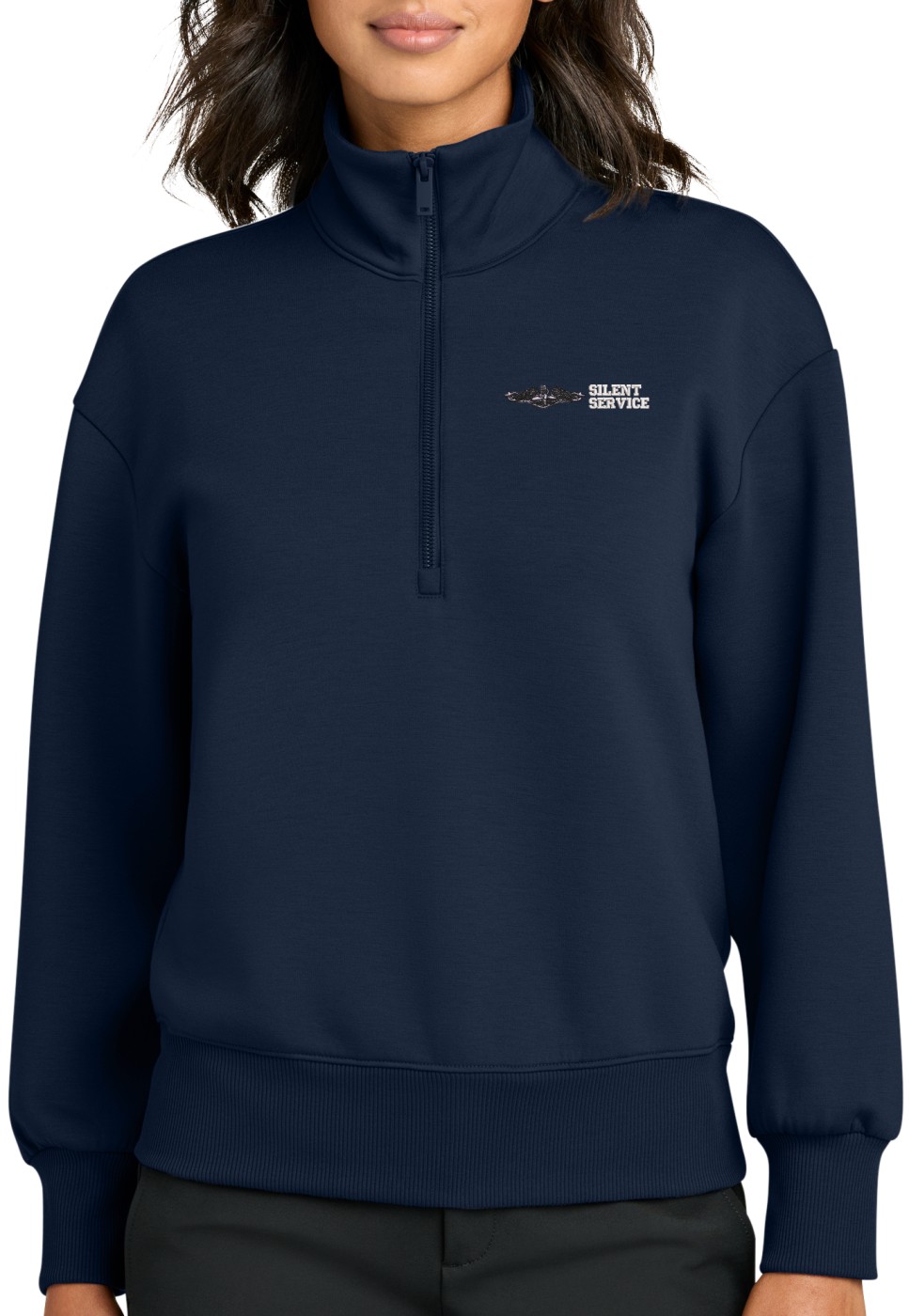 MilitaryBest is proud to offer this U.S. Navy Enlisted Silver Dolphins Silent Service Women's Soft Spacer Quarter-Zip. This quarter-zip is embroidered by our MilitaryBest team in Northeast Alabama. These quarter-zips are made using spacer yarn to provide light insulation with a soft structure, they also fight odor and provide light UV ray protection.Care Instructions: Turn Garment Inside Out. Machine Wash Cold With Like Colors. Only Non-Chlorine Bleach, When Needed. Tumble Dry Low, Remove Promptly. Cool Iron, If Necessary. Do Not Use Fabric Softeners Or Dryer Sheets.