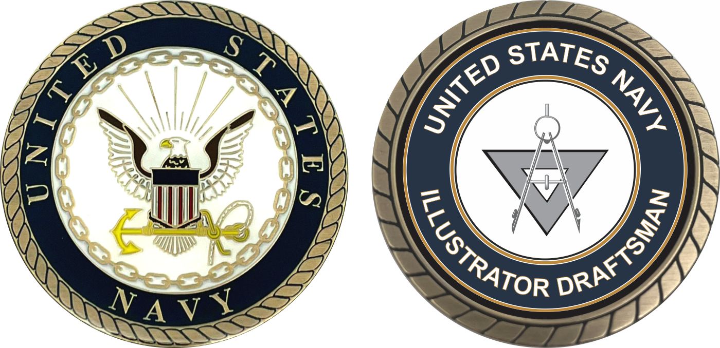 This 1 3/4” U.S. Navy Illustrator Draftsman DM Challenge Coin is proudly offered by MilitaryBest. This Officially Licensed Navy coin has beautiful enamel finish on one side and an organized crisp clean Illustrator Draftsman DM design on the opposite side.