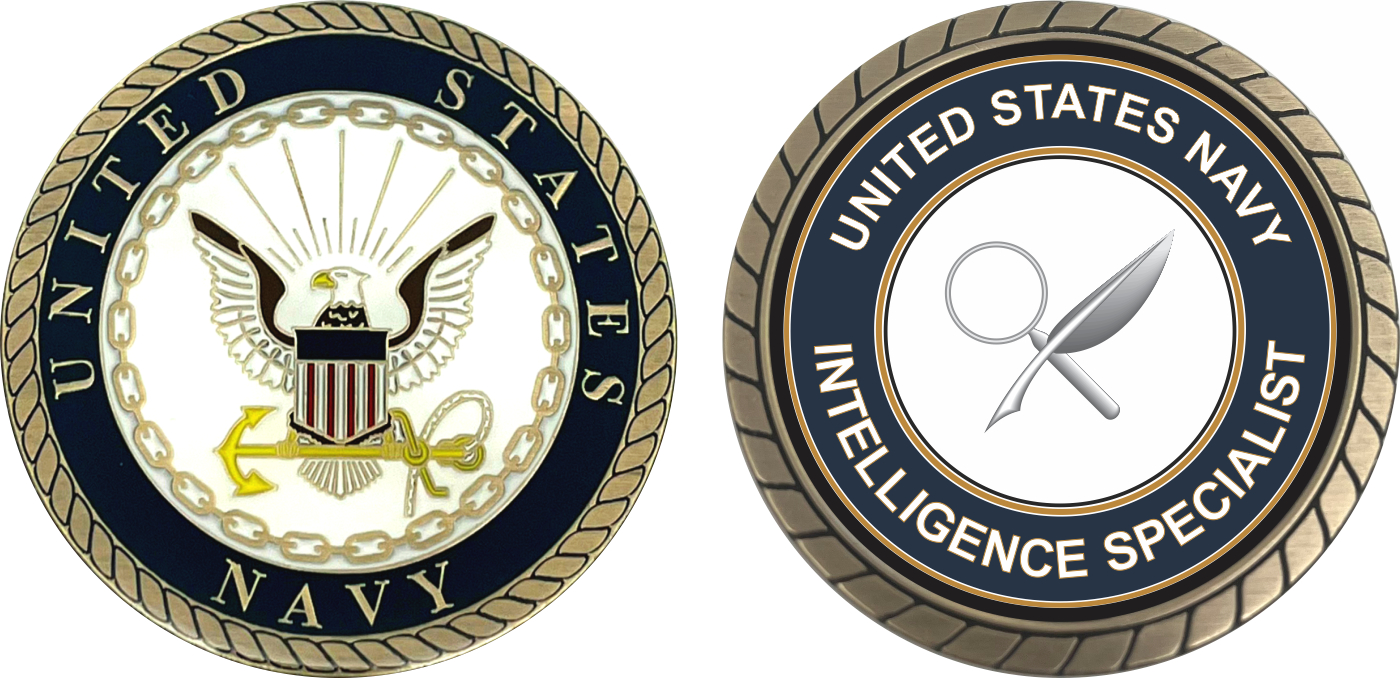 This 1 3/4” U.S. Navy Intelligence Specialist IS Challenge Coin is proudly offered by MilitaryBest. This Officially Licensed Navy coin has beautiful enamel finish on one side and an organized crisp clean Intelligence Specialist IS design on the opposite side.