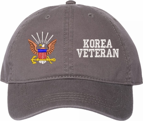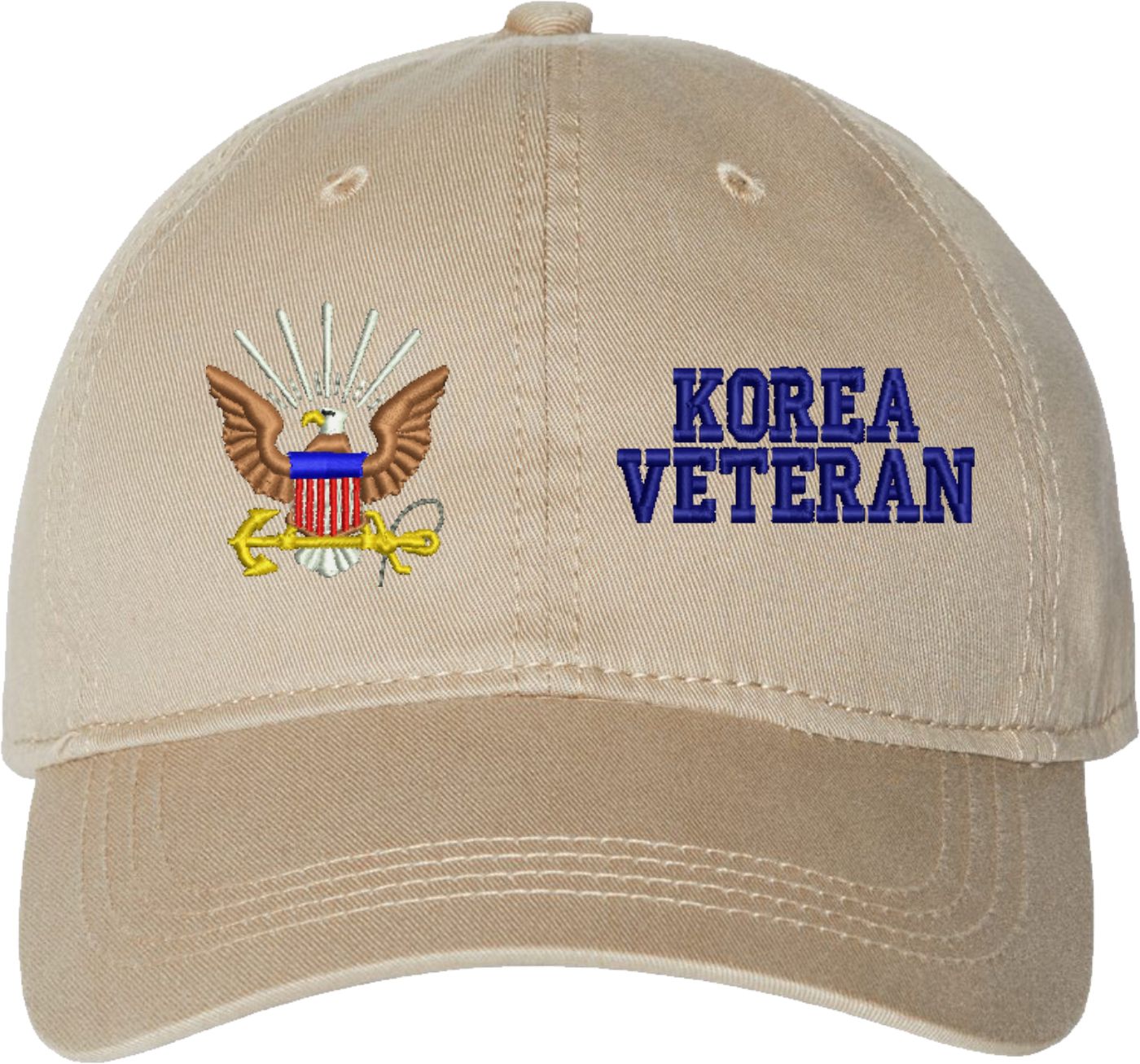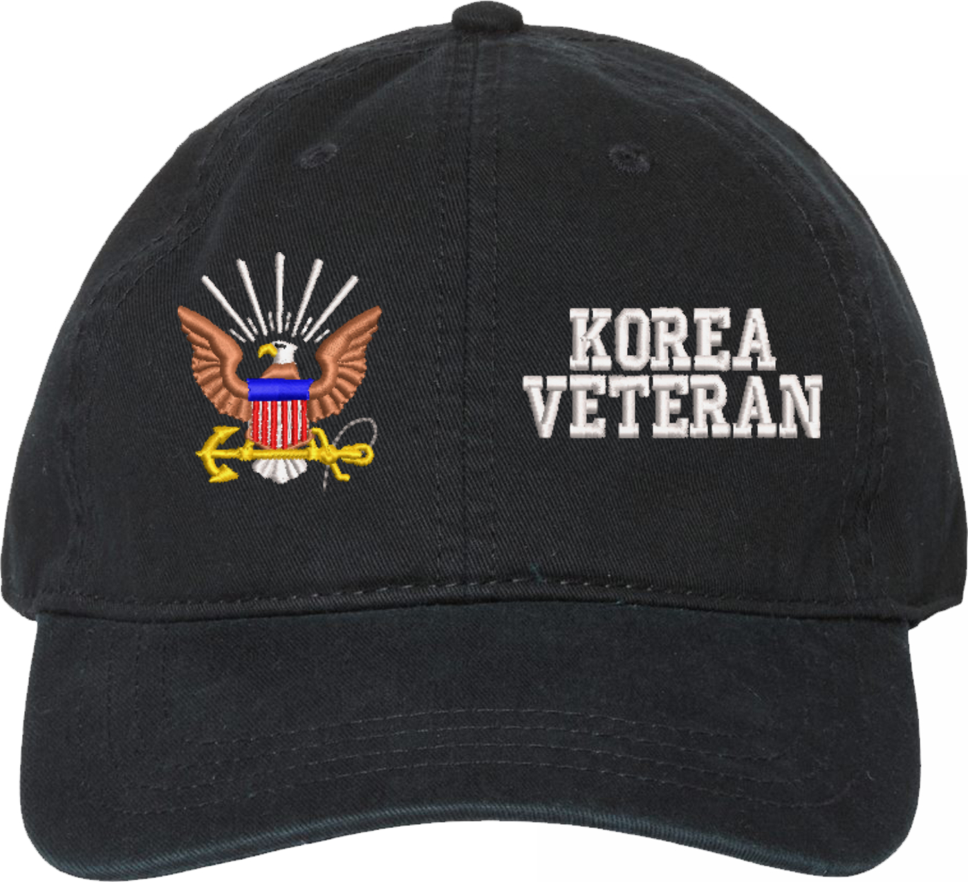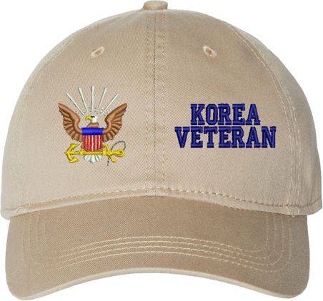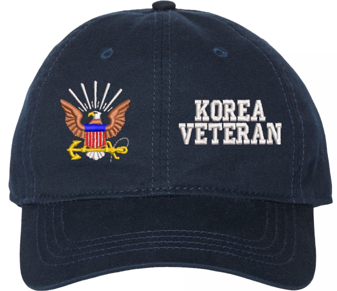 Show your Navy pride with this U.S. Navy Korea Veteran Unstructured Dad Cap from MilitaryBest. Crafted from 100% washed chino twill cotton, this six-panel, low-profile cap offers a relaxed and comfortable fit. Featuring high-quality embroidery done in our Scottsboro, Alabama facility, this cap is designed with a pre-curved visor and an adjustable tri-glide buckle closure for a perfect fit. Whether for everyday wear or as a meaningful gift, this cap is a great way to honor your own or a loved one's service.For caps ordered with custom embroidered personalized text please allow an additional 3 to 5 days production time. All custom back text will be embroidered in ALL CAPITAL LETTERS. Caps with back text or eggs are non-returnable unless there is a material defect in the cap.