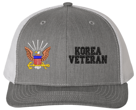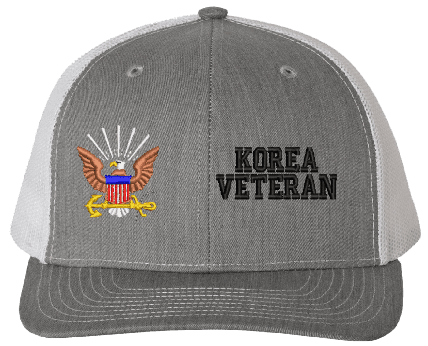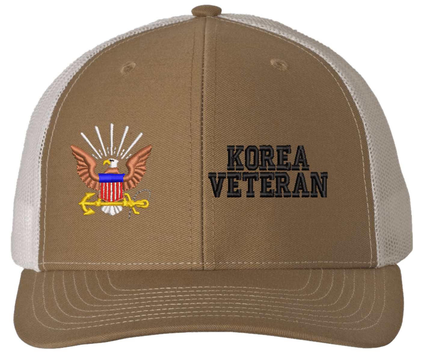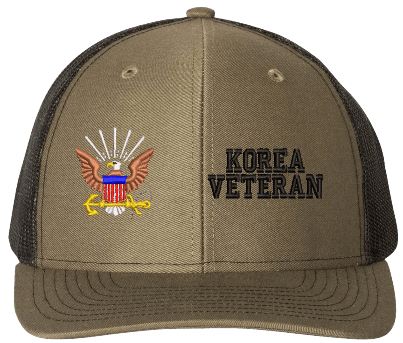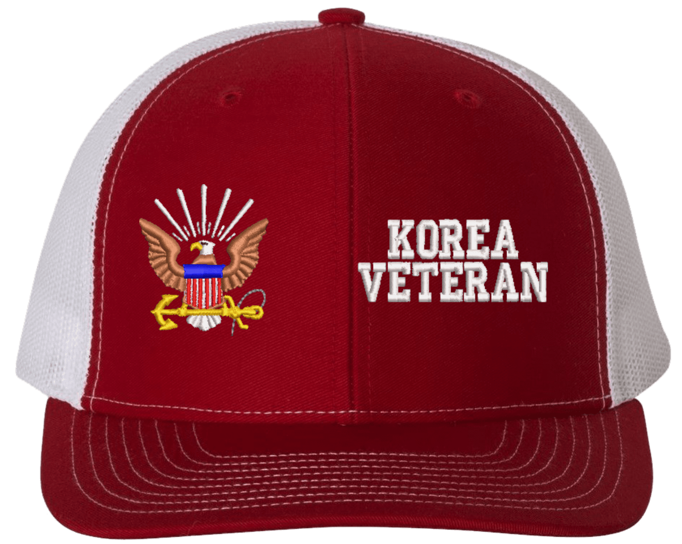 MilitaryBest is proud to offer this U.S. Navy Korea Veteran Mesh Back Cap. The design of this U.S. Navy Cap is crisp, clean, and sure to be loved by people of all ages! Select above from our many cap colors. This U.S. Navy Korea Veteran Mesh Back Cap is crafted by our skilled embroidery technicians at our facilities in Scottsboro, AL. As with all MilitaryBest items, your satisfaction is guaranteed!Caps ordered with custom embroidered personalized back text require an additional 2 to 3 days production time. All custom back text will be embroidered in ALL CAPITAL LETTERS. Caps personalized with back text are non-returnable unless there is a material defect in the cap.