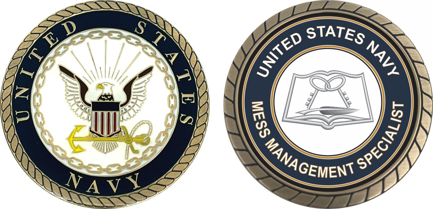 This 1 3/4” U.S. Navy Mess Management Specialist MS Challenge Coin is proudly offered by MilitaryBest. This Officially Licensed Navy coin has beautiful enamel finish on one side and an organized crisp clean Mess Management Specialist MS design on the opposite side.